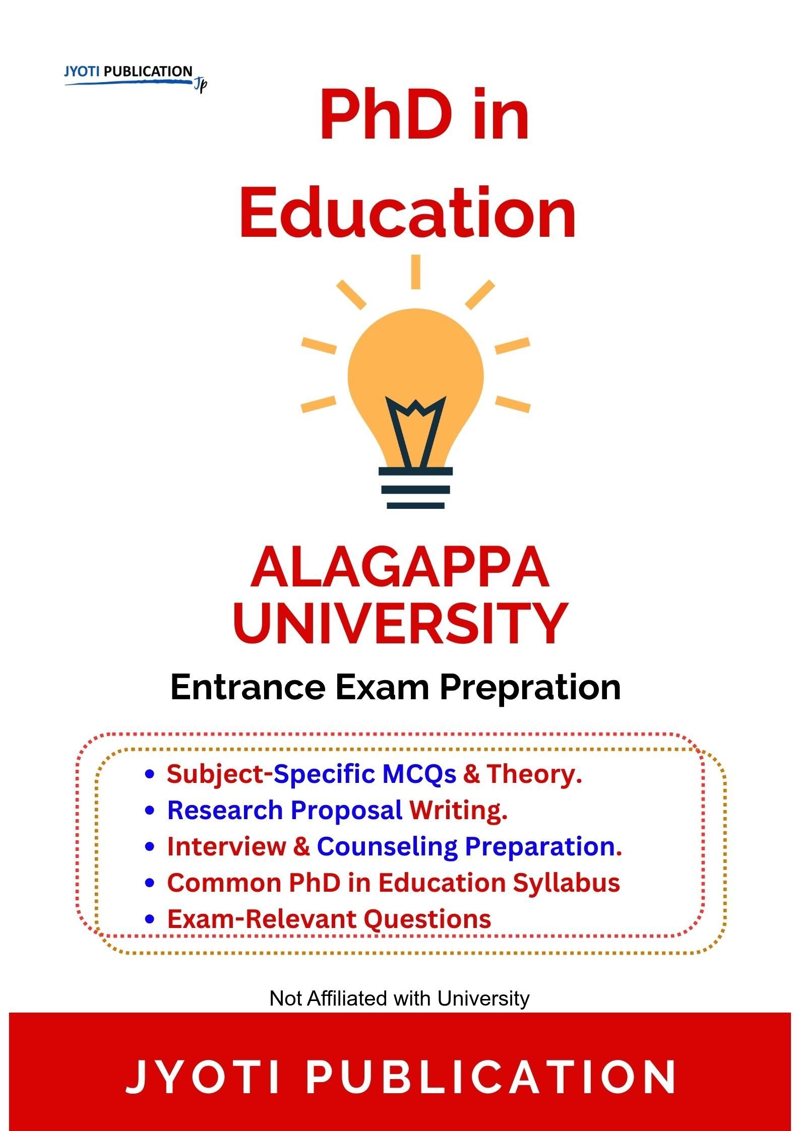 Alagappa University PhD in Education Entrance Entrance Exam Preparation Guide is an independently developed study resource created to support aspirants preparing for the PhD in Education Entrance entrance examination conducted by Alagappa University. The book is designed to help candidates understand concepts clearly, practise exam-oriented questions, and prepare in a structured and efficient manner.