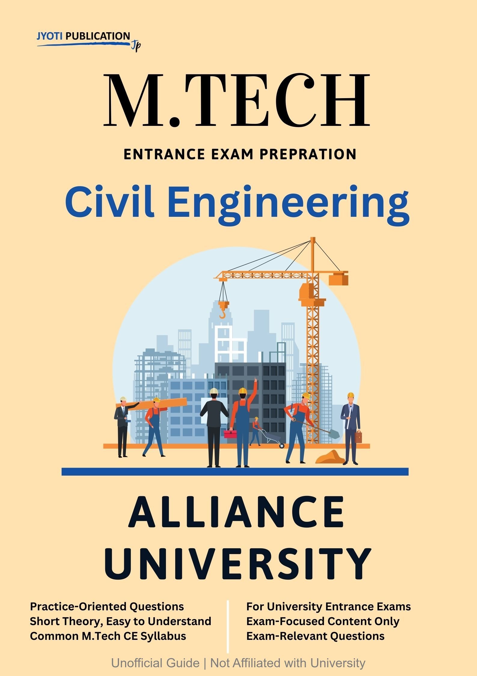 Alliance University M.Tech in Civil Engineering Entrance Exam Preparation Guide is an independently developed study resource created to support aspirants preparing for the M.Tech in Civil Engineering entrance examination conducted by Alliance University. The book is designed to help candidates understand concepts clearly, practise exam-oriented questions, and prepare in a structured and efficient manner.