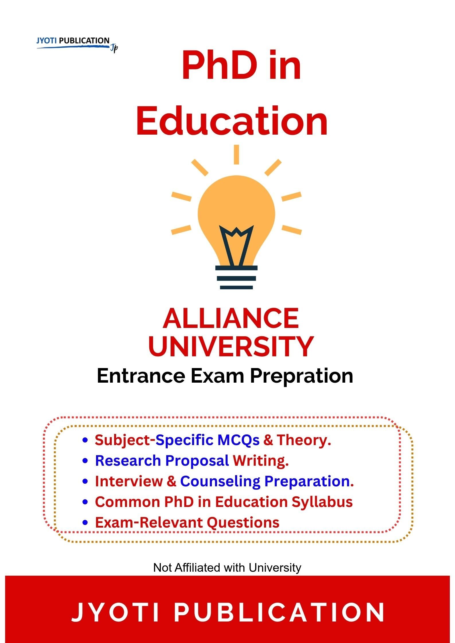 Alliance University PhD in Education Entrance Entrance Exam Preparation Guide is an independently developed study resource created to support aspirants preparing for the PhD in Education Entrance entrance examination conducted by Alliance University. The book is designed to help candidates understand concepts clearly, practise exam-oriented questions, and prepare in a structured and efficient manner.