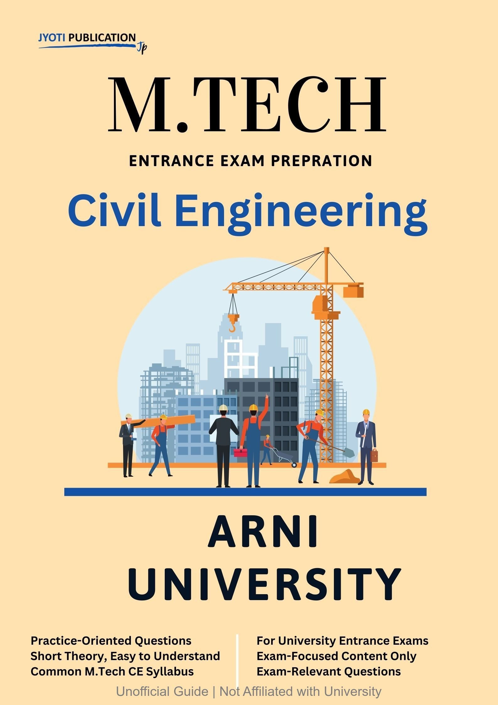 ArniUniversity M.Tech in Civil Engineering Entrance Exam Preparation Guide is an independently developed study resource created to support aspirants preparing for the M.Tech in Civil Engineering entrance examination conducted by ArniUniversity. The book is designed to help candidates understand concepts clearly, practise exam-oriented questions, and prepare in a structured and efficient manner.