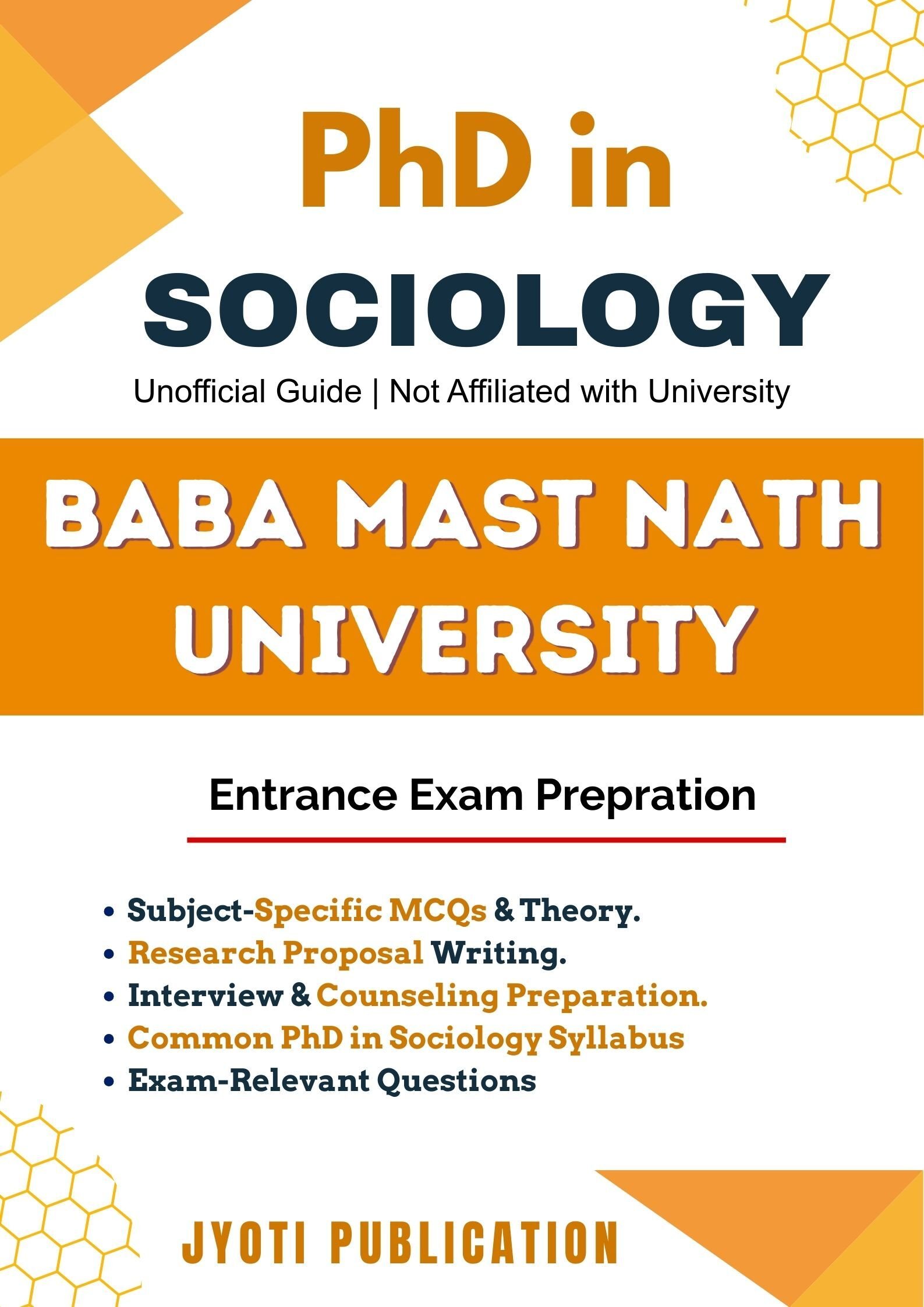 Baba Mast Nath University PhD in Sociology Entrance Exam Preparation Guide is an independently developed study resource created to support aspirants preparing for the PhD in Sociology entrance examination conducted by Baba Mast Nath University. The book is designed to help candidates understand concepts clearly, practise exam-oriented questions, and prepare in a structured and efficient manner.
