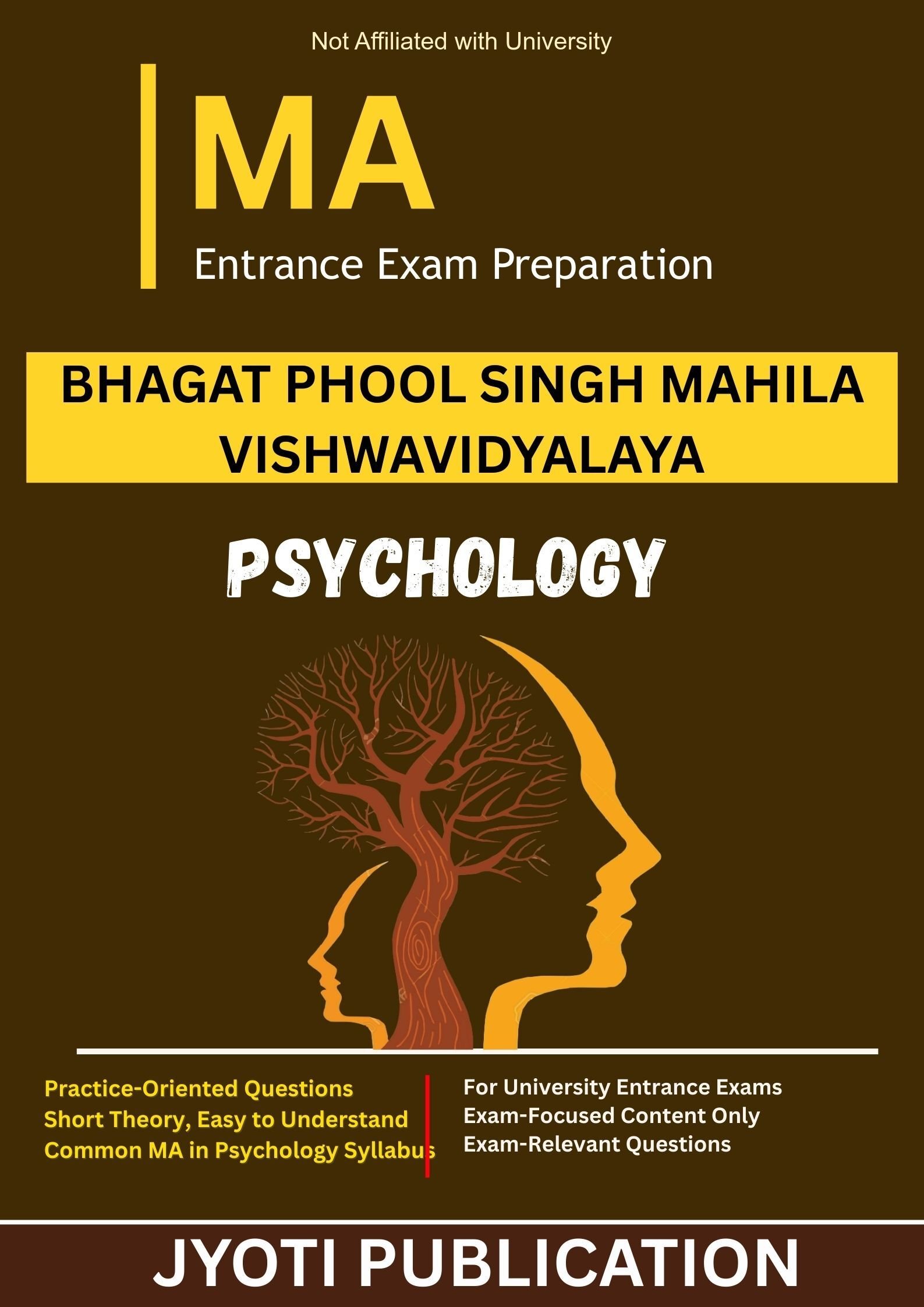 Bhagat Phool Singh Mahila Vishwavidyalaya M.A. in Psychology Entrance Exam Preparation Guide is an independently developed study resource created to support aspirants preparing for the M.A. in Psychology entrance examination conducted by Bhagat Phool Singh Mahila Vishwavidyalaya. The book is designed to help candidates understand concepts clearly, practise exam-oriented questions, and prepare in a structured and efficient manner.