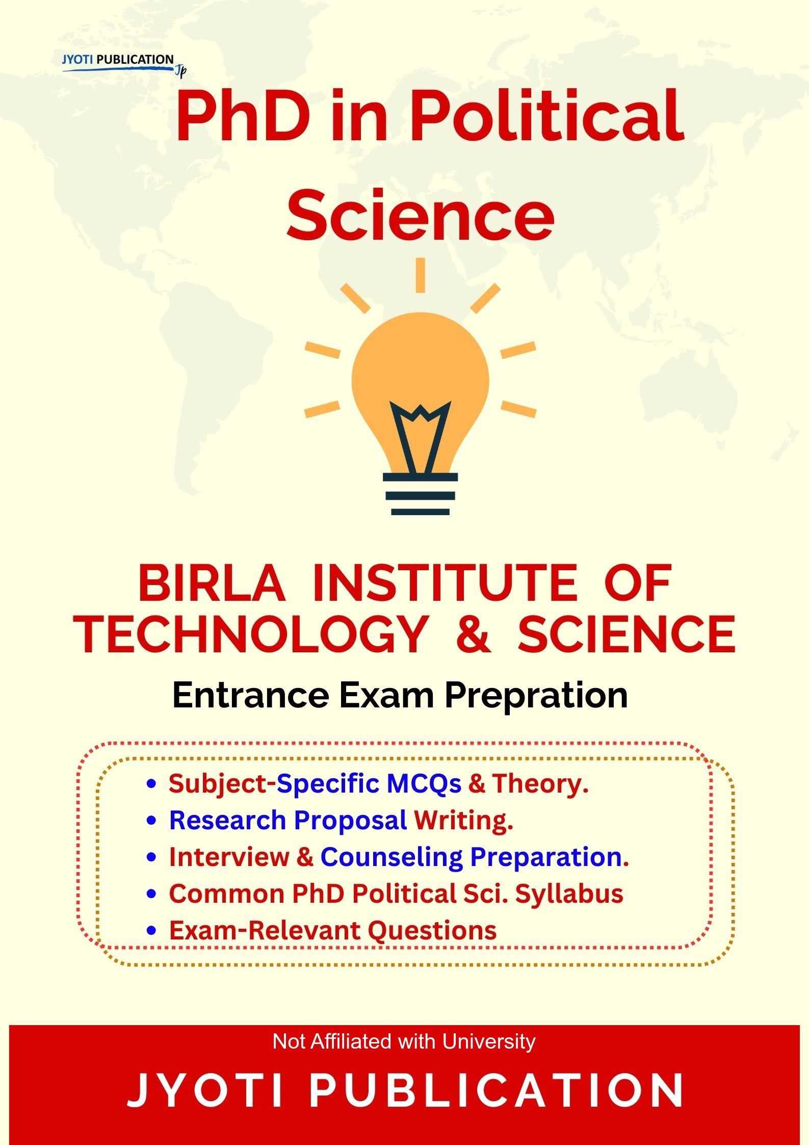 Birla Institute of Technology Science PhD in Political Science Entrance Exam Preparation Guide is an independently developed study resource created to support aspirants preparing for the PhD in Political Science entrance examination conducted by Birla Institute of Technology Science. The book is designed to help candidates understand concepts clearly, practise exam-oriented questions, and prepare in a structured and efficient manner.