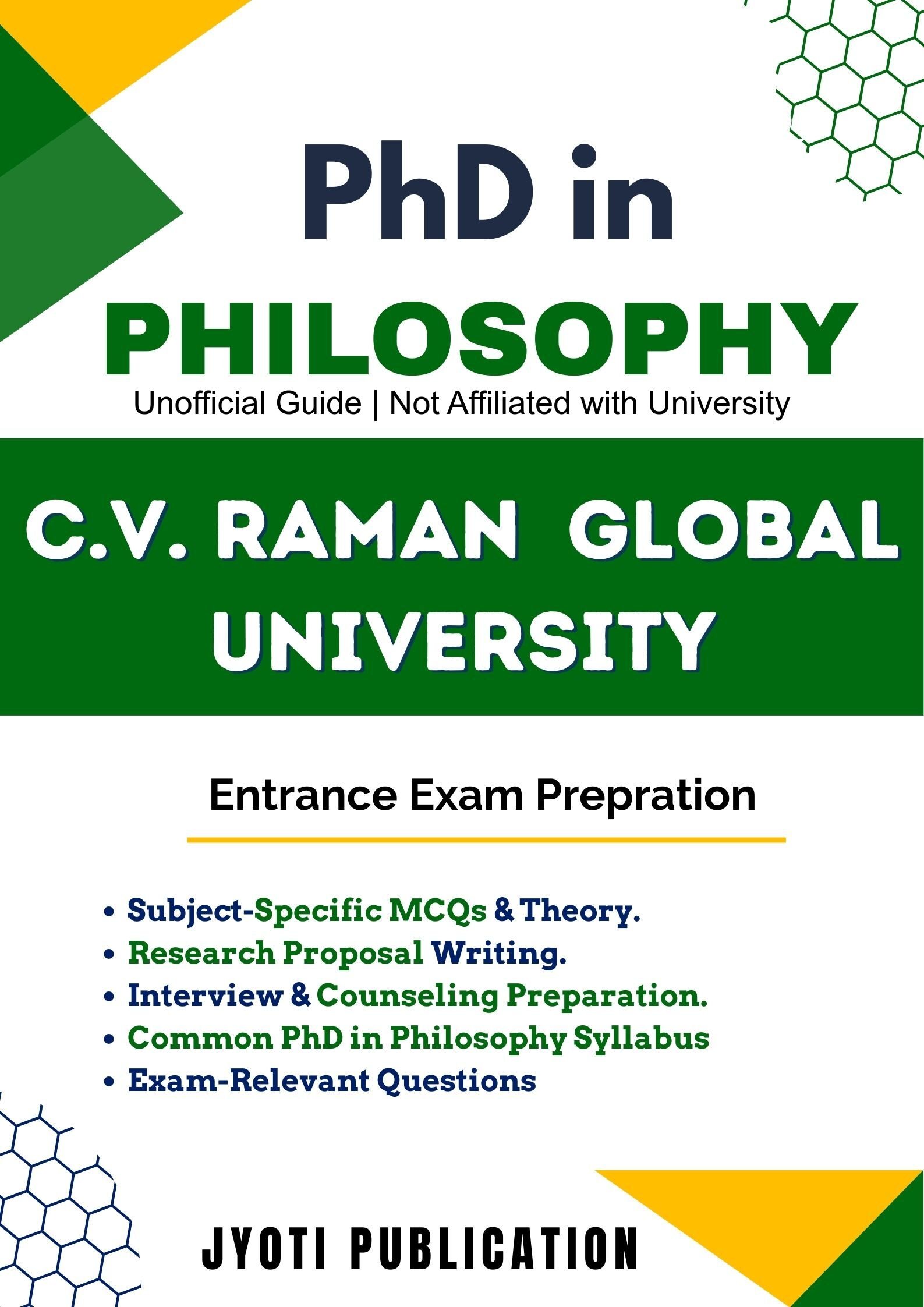 C.V. Raman Global University PhD in Philosophy Entrance Exam Preparation Guide is an independently developed study resource created to support aspirants preparing for the PhD in Philosophy entrance examination conducted by C.V. Raman Global University. The book is designed to help candidates understand concepts clearly, practise exam-oriented questions, and prepare in a structured and efficient manner.