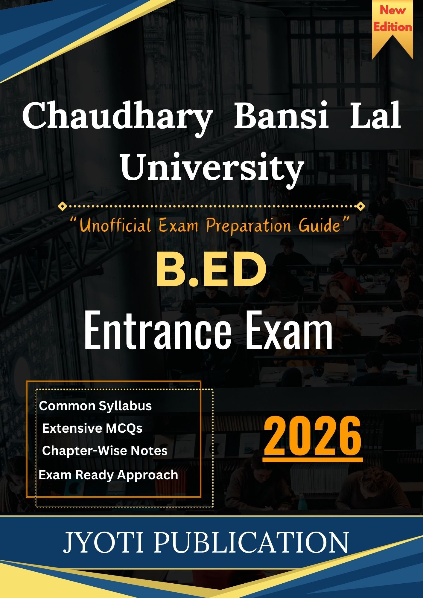 Chaudhary Bansi Lal University B.Ed Entrance Exam Preparation Guide is an independently developed study resource created to support aspirants preparing for the B.Ed entrance examination conducted by Chaudhary Bansi Lal University . The book is designed to help candidates understand concepts clearly, practise exam-oriented questions, and prepare in a structured and efficient manner.