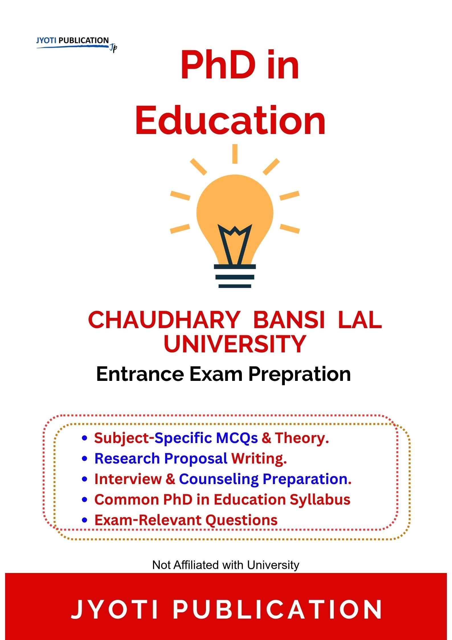 Chaudhary Bansi Lal University PhD in Education Entrance Entrance Exam Preparation Guide is an independently developed study resource created to support aspirants preparing for the PhD in Education Entrance entrance examination conducted by Chaudhary Bansi Lal University. The book is designed to help candidates understand concepts clearly, practise exam-oriented questions, and prepare in a structured and efficient manner.