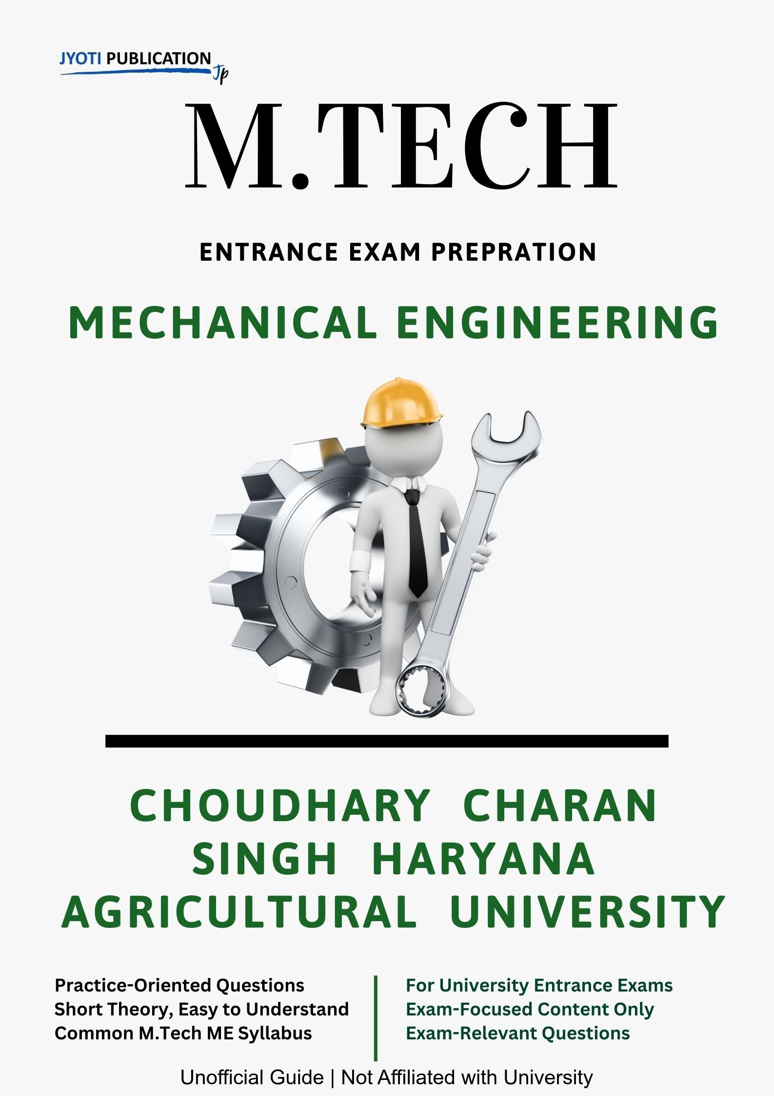 Choudhary Charan Singh Haryana Agricultural University M.Tech in Mechanical Engineering Entrance Exam Preparation Guide is an independently developed study resource created to support aspirants preparing for the M.Tech in Mechanical Engineering entrance examination conducted by Choudhary Charan Singh Haryana Agricultural University. The book is designed to help candidates understand concepts clearly, practise exam-oriented questions, and prepare in a structured and efficient manner.