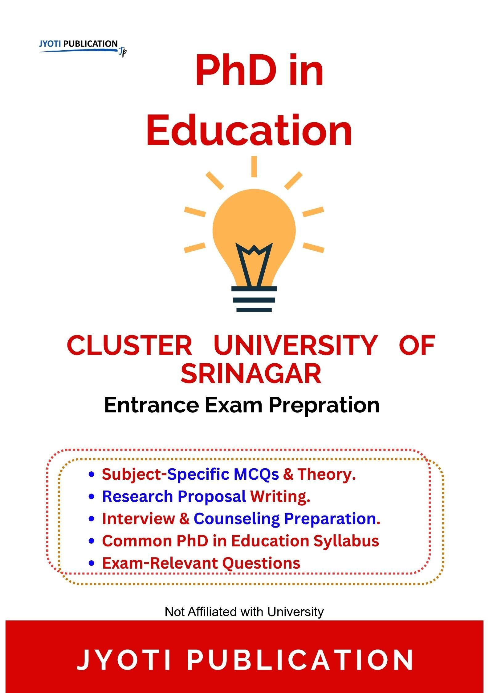 Cluster University of Srinagar PhD in Education Entrance Entrance Exam Preparation Guide is an independently developed study resource created to support aspirants preparing for the PhD in Education Entrance entrance examination conducted by Cluster University of Srinagar. The book is designed to help candidates understand concepts clearly, practise exam-oriented questions, and prepare in a structured and efficient manner.