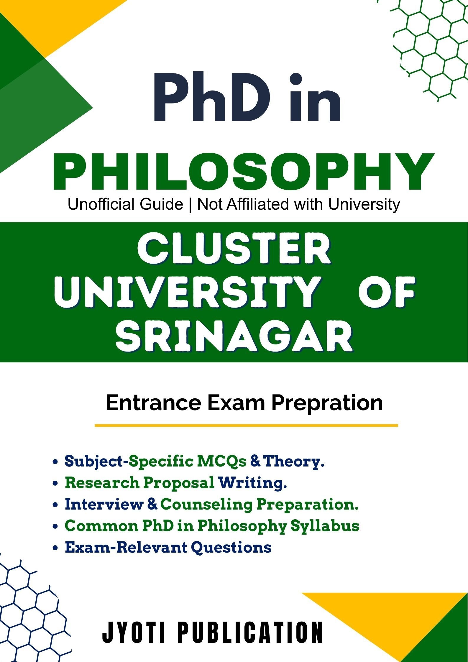 Cluster University of Srinagar PhD in Philosophy Entrance Exam Preparation Guide is an independently developed study resource created to support aspirants preparing for the PhD in Philosophy entrance examination conducted by Cluster University of Srinagar. The book is designed to help candidates understand concepts clearly, practise exam-oriented questions, and prepare in a structured and efficient manner.