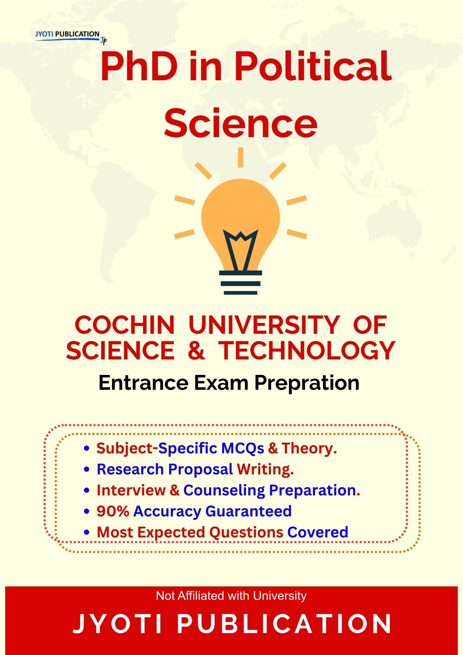 Cochin University of Science Technology PhD in Political Science Entrance Exam Preparation Guide is an independently developed study resource created to support aspirants preparing for the PhD in Political Science entrance examination conducted by Cochin University of Science Technology. The book is designed to help candidates understand concepts clearly, practise exam-oriented questions, and prepare in a structured and efficient manner.