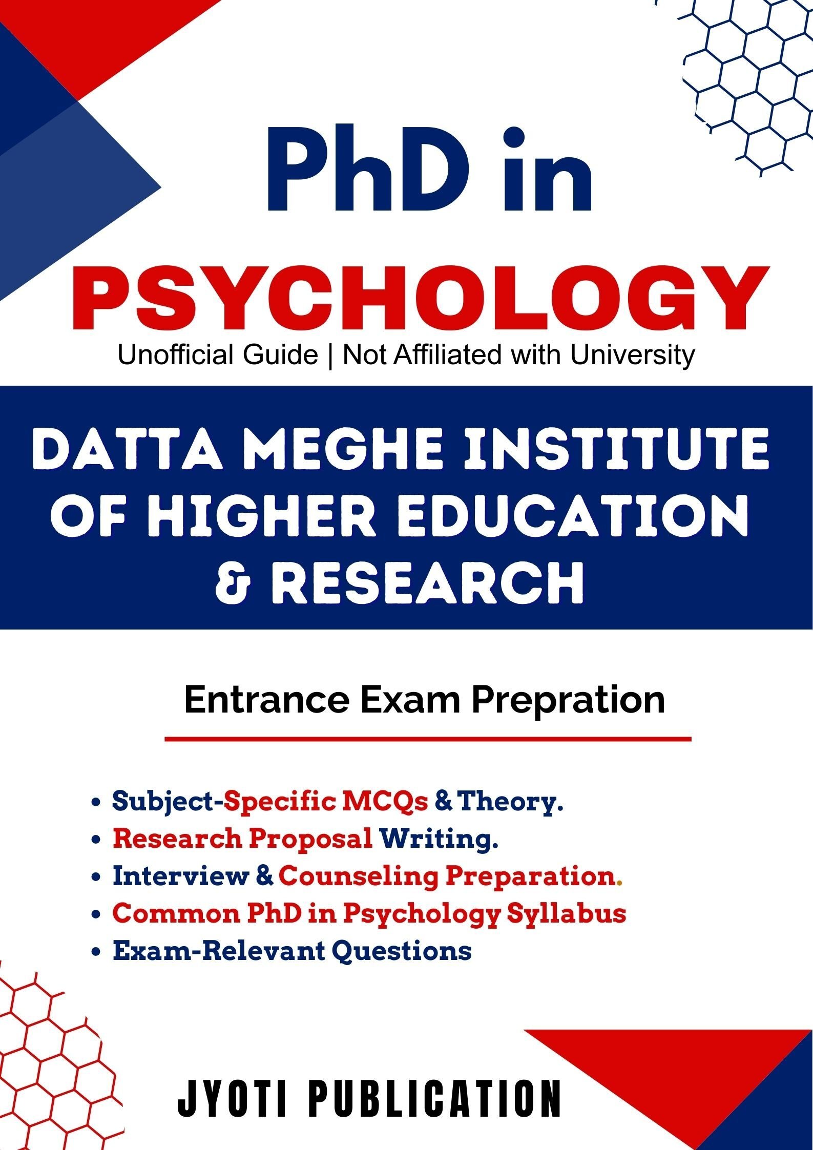 Datta Meghe Institute of Higher Education Research Formerly Datta Meghe Institute of Medical Sciences PhD in Psychology Entrance Exam Preparation Guide is an independently developed study resource created to support aspirants preparing for the PhD in Psychology entrance examination conducted by Datta Meghe Institute of Higher Education Research Formerly Datta Meghe Institute of Medical Sciences. The book is designed to help candidates understand concepts clearly, practise exam-oriented questions, and prepare in a structured and efficient manner.