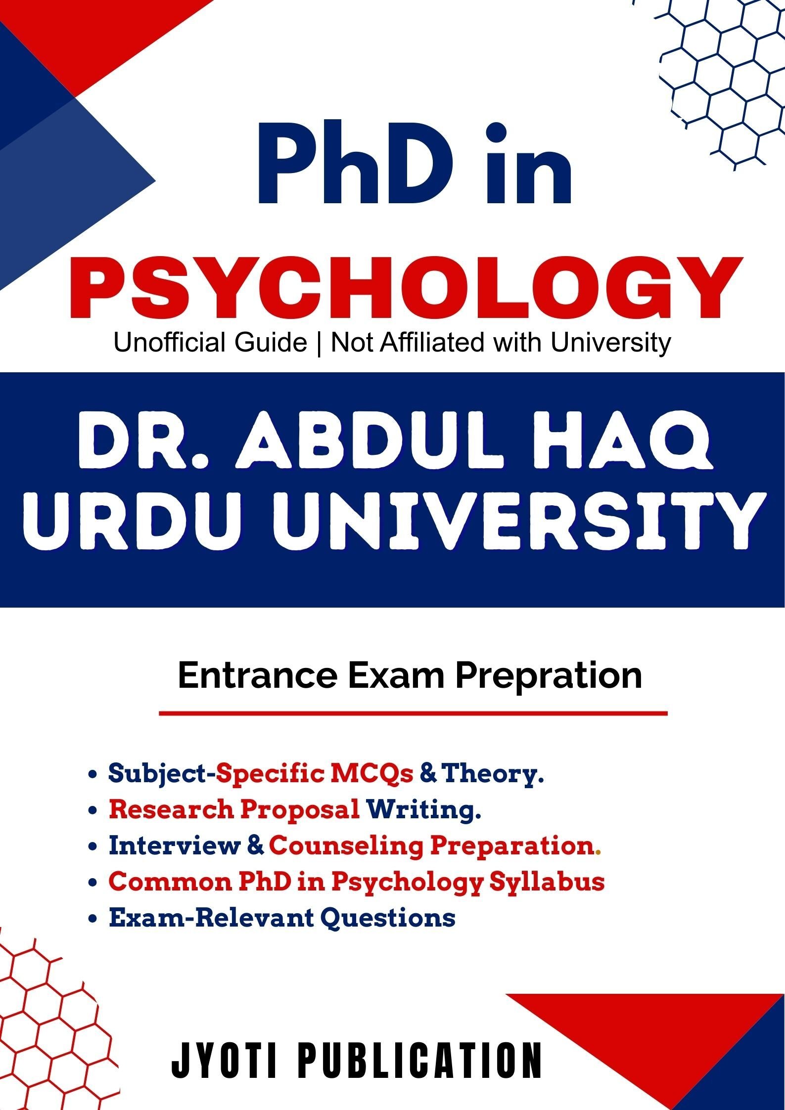 Dr. Abdul Haq Urdu University PhD in Psychology Entrance Exam Preparation Guide is an independently developed study resource created to support aspirants preparing for the PhD in Psychology entrance examination conducted by Dr. Abdul Haq Urdu University. The book is designed to help candidates understand concepts clearly, practise exam-oriented questions, and prepare in a structured and efficient manner.