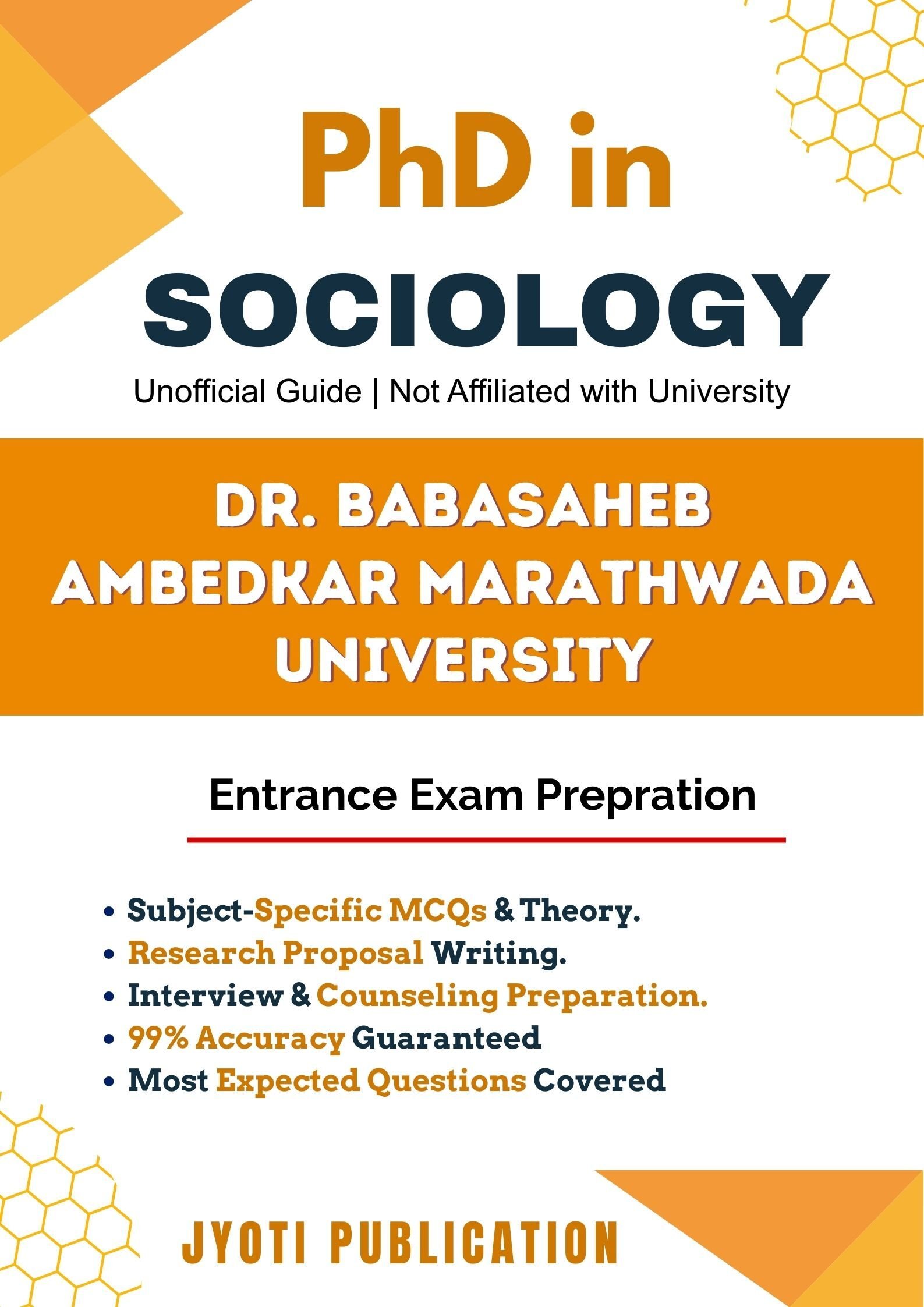 Dr. Babasaheb Ambedkar Marathwada University PhD in Sociology Entrance Exam Preparation Guide is an independently developed study resource created to support aspirants preparing for the PhD in Sociology entrance examination conducted by Dr. Babasaheb Ambedkar Marathwada University. The book is designed to help candidates understand concepts clearly, practise exam-oriented questions, and prepare in a structured and efficient manner.