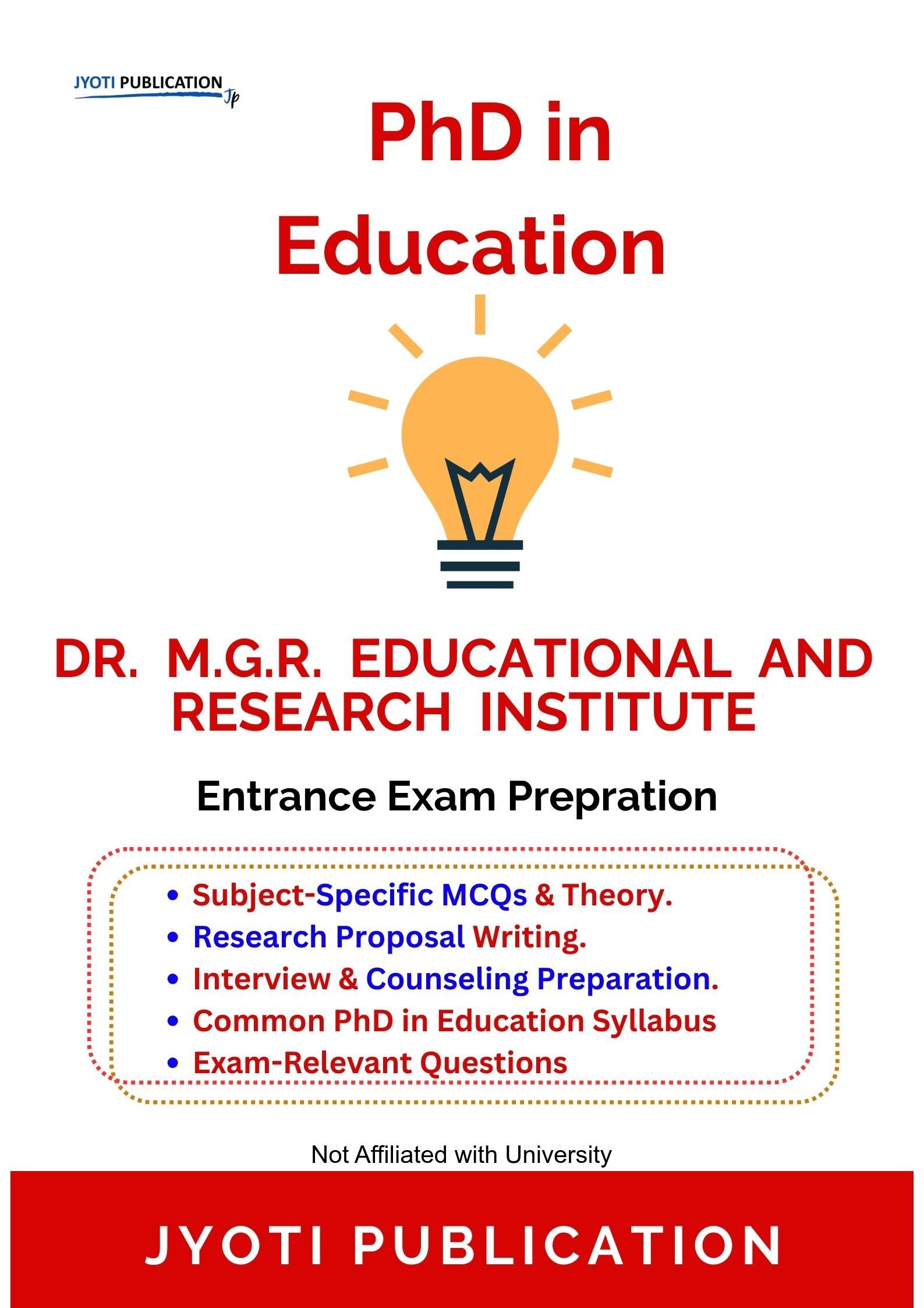 Dr. M.G.R. Educational and Research Institute PhD in Education Entrance Entrance Exam Preparation Guide is an independently developed study resource created to support aspirants preparing for the PhD in Education Entrance entrance examination conducted by Dr. M.G.R. Educational and Research Institute. The book is designed to help candidates understand concepts clearly, practise exam-oriented questions, and prepare in a structured and efficient manner.