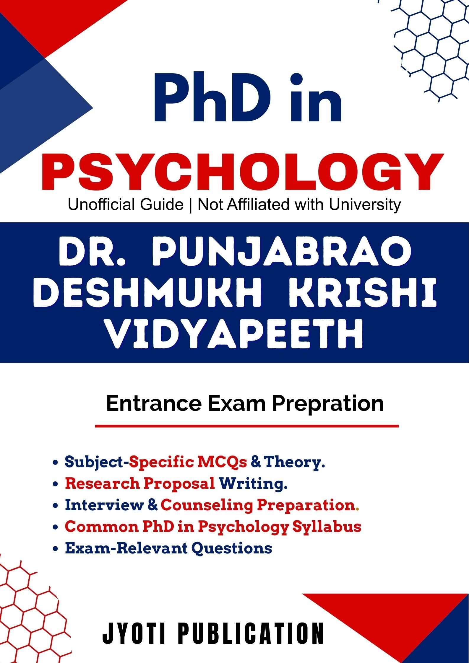 Dr. Punjabrao Deshmukh Krishi Vidyapeeth PhD in Psychology Entrance Exam Preparation Guide is an independently developed study resource created to support aspirants preparing for the PhD in Psychology entrance examination conducted by Dr. Punjabrao Deshmukh Krishi Vidyapeeth. The book is designed to help candidates understand concepts clearly, practise exam-oriented questions, and prepare in a structured and efficient manner.