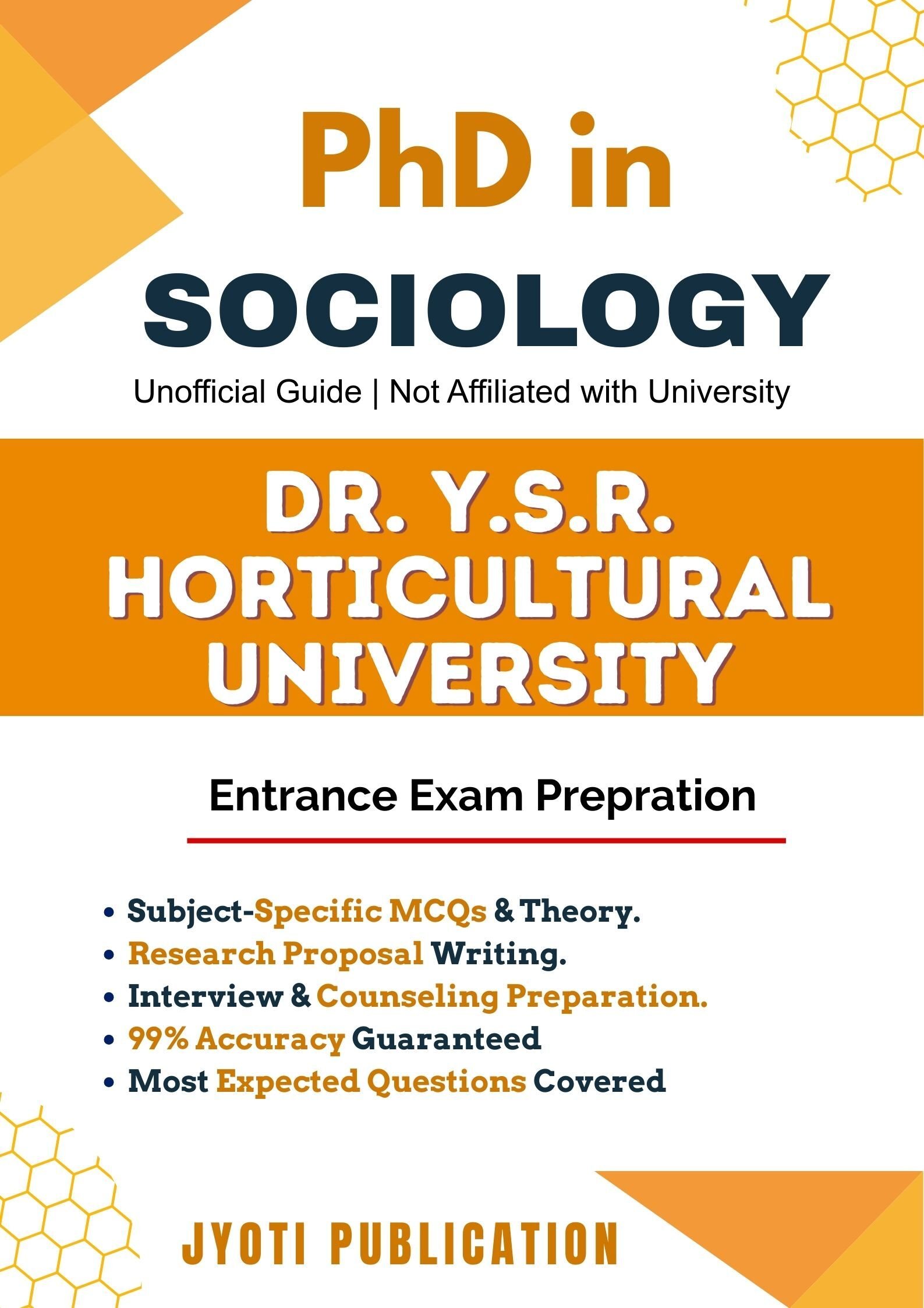 Dr. Y.S.R. Horticultural University PhD in Sociology Entrance Exam Preparation Guide is an independently developed study resource created to support aspirants preparing for the PhD in Sociology entrance examination conducted by Dr. Y.S.R. Horticultural University. The book is designed to help candidates understand concepts clearly, practise exam-oriented questions, and prepare in a structured and efficient manner.