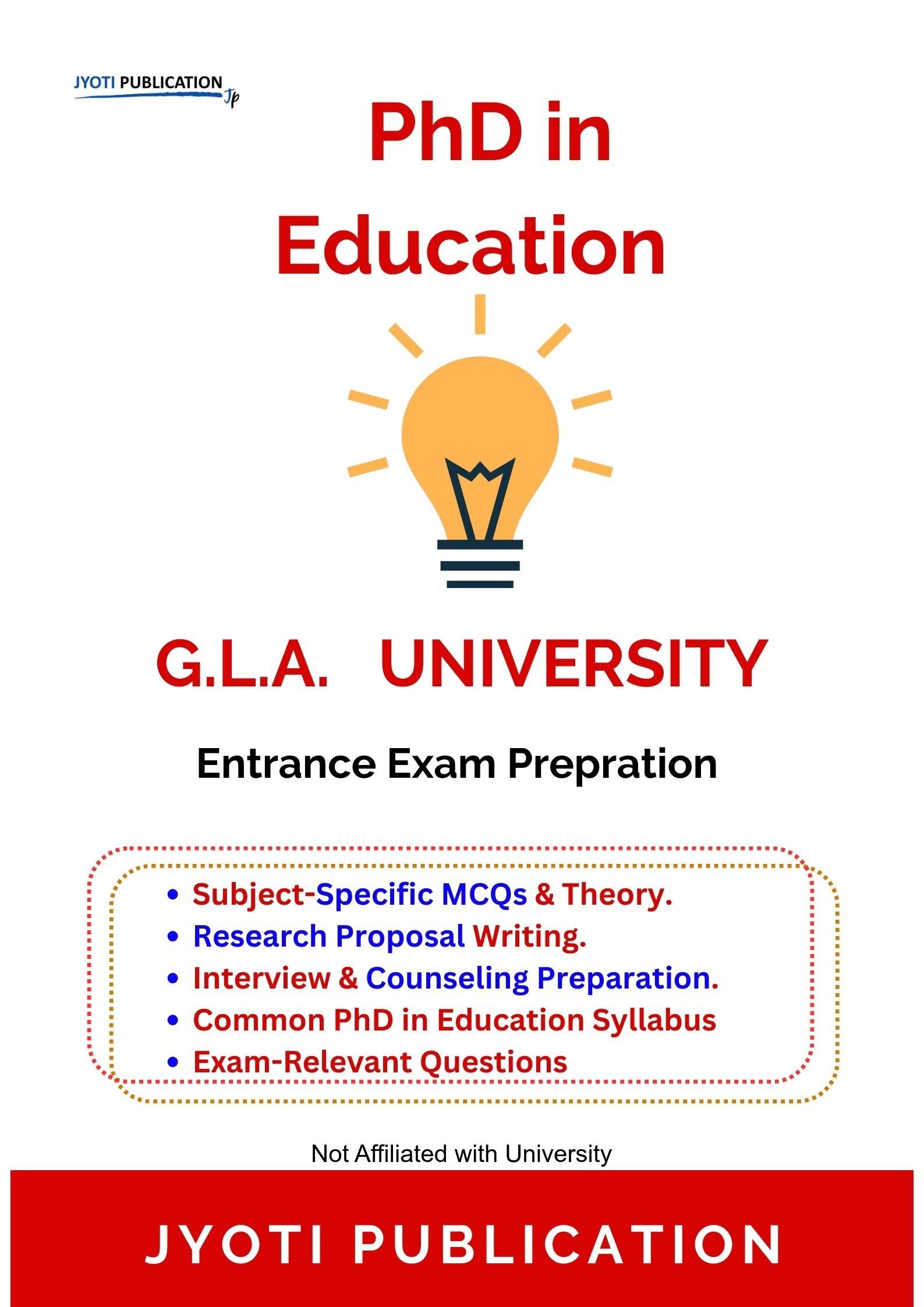 G.L.A. University PhD in Education Entrance Entrance Exam Preparation Guide is an independently developed study resource created to support aspirants preparing for the PhD in Education Entrance entrance examination conducted by G.L.A. University. The book is designed to help candidates understand concepts clearly, practise exam-oriented questions, and prepare in a structured and efficient manner.