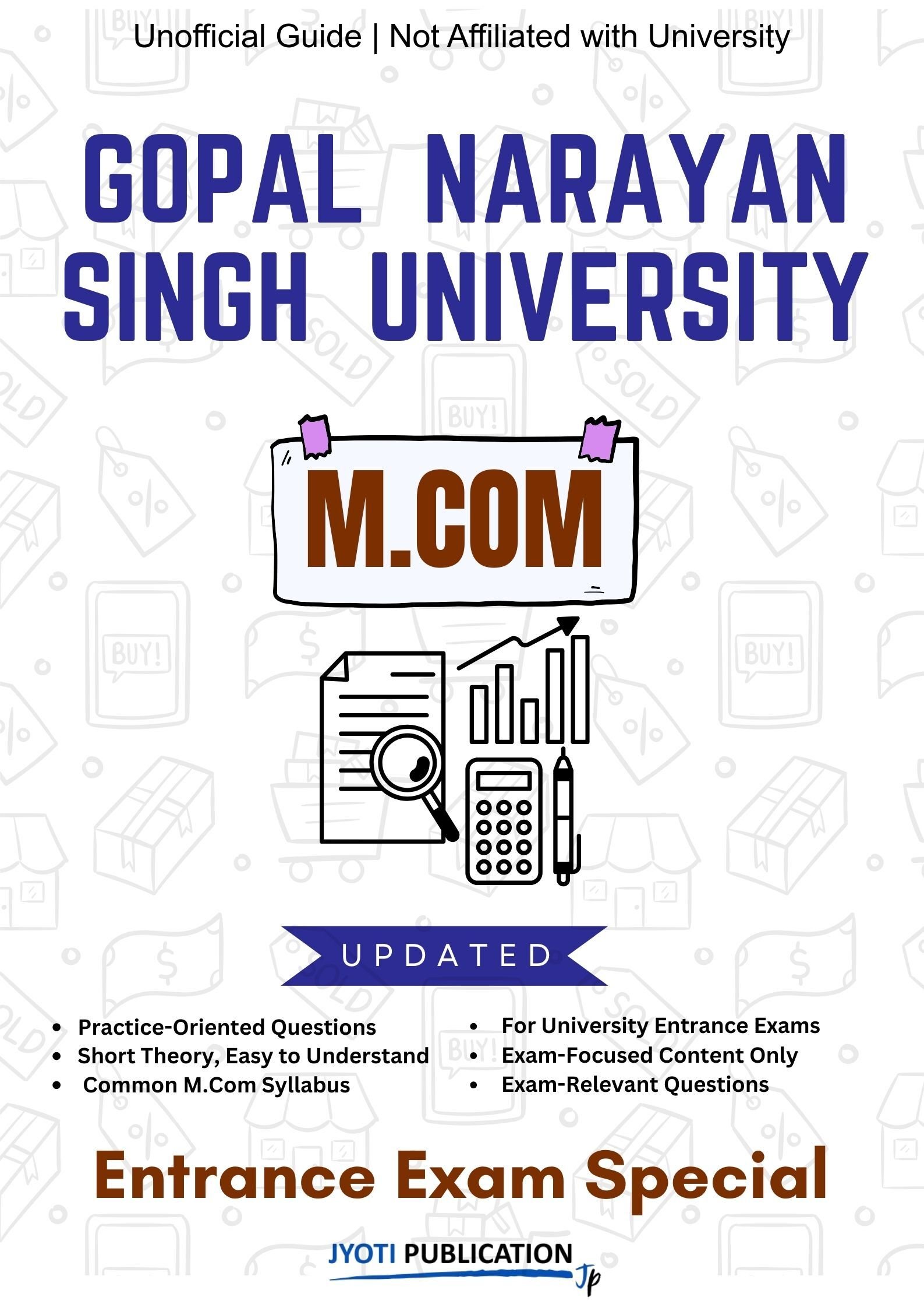 Gopal Narayan Singh University M.Com Entrance Exam Preparation Guide is an independently developed study resource created to support aspirants preparing for the M.Com entrance examination conducted by Gopal Narayan Singh University. The book is designed to help candidates understand concepts clearly, practise exam-oriented questions, and prepare in a structured and efficient manner.
