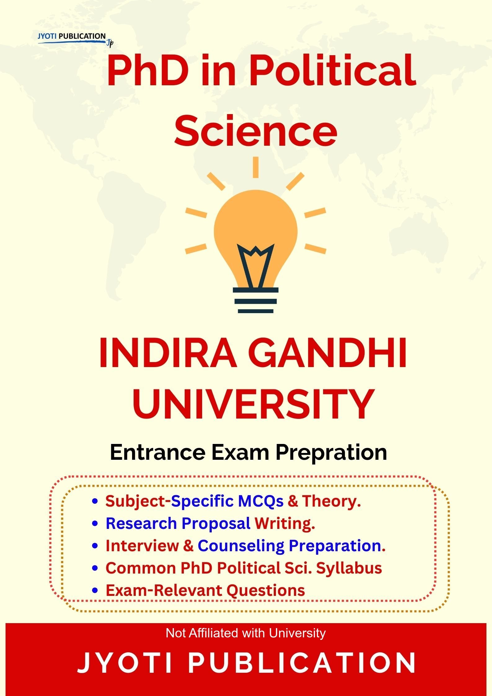 Since many universities follow similar frameworks for entrance testing, this guide also includes overlapping concepts useful for candidates appearing in multiple PhD in Political Science entrance examinations. This makes the book a practical preparation resource beyond a single exam context.