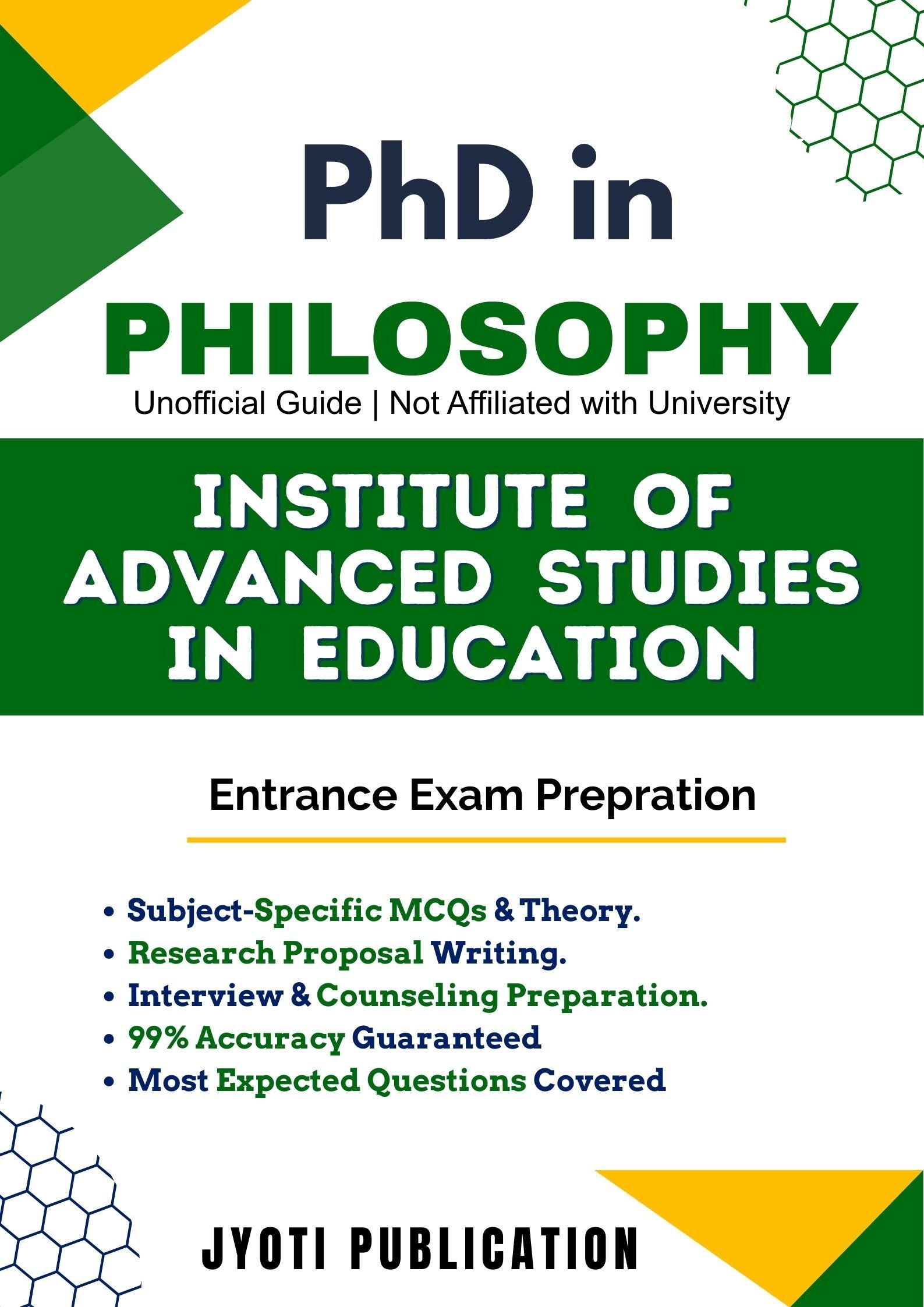 Institute of Advanced Studies in Education PhD in Philosophy Entrance Exam Preparation Guide is an independently developed study resource created to support aspirants preparing for the PhD in Philosophy entrance examination conducted by Institute of Advanced Studies in Education. The book is designed to help candidates understand concepts clearly, practise exam-oriented questions, and prepare in a structured and efficient manner.