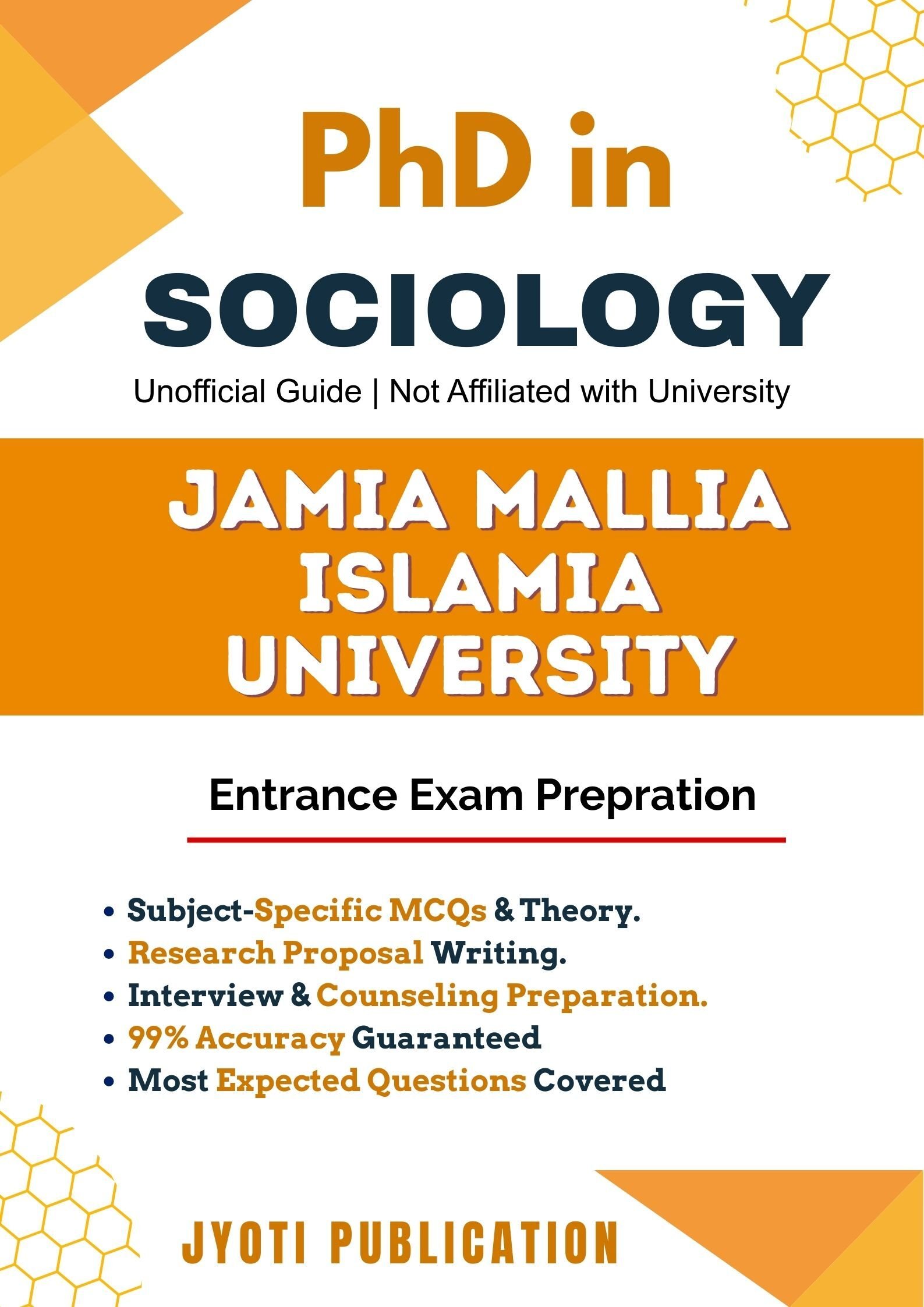 Jamia Mallia Islamia University PhD in Sociology Entrance Exam Preparation Guide is an independently developed study resource created to support aspirants preparing for the PhD in Sociology entrance examination conducted by Jamia Mallia Islamia University. The book is designed to help candidates understand concepts clearly, practise exam-oriented questions, and prepare in a structured and efficient manner.
