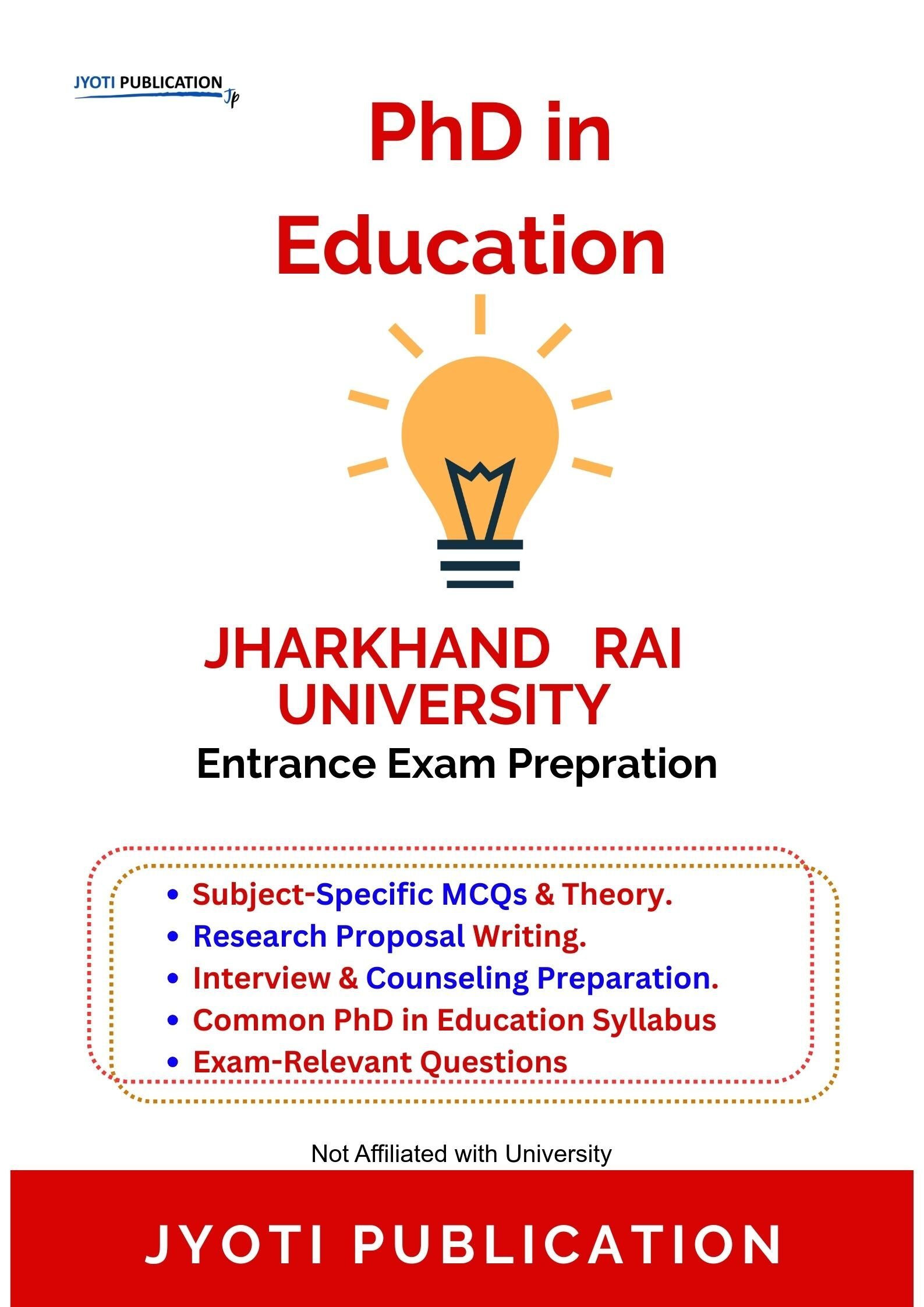 Jharkhand Rai University PhD in Education Entrance Entrance Exam Preparation Guide is an independently developed study resource created to support aspirants preparing for the PhD in Education Entrance entrance examination conducted by Jharkhand Rai University. The book is designed to help candidates understand concepts clearly, practise exam-oriented questions, and prepare in a structured and efficient manner.