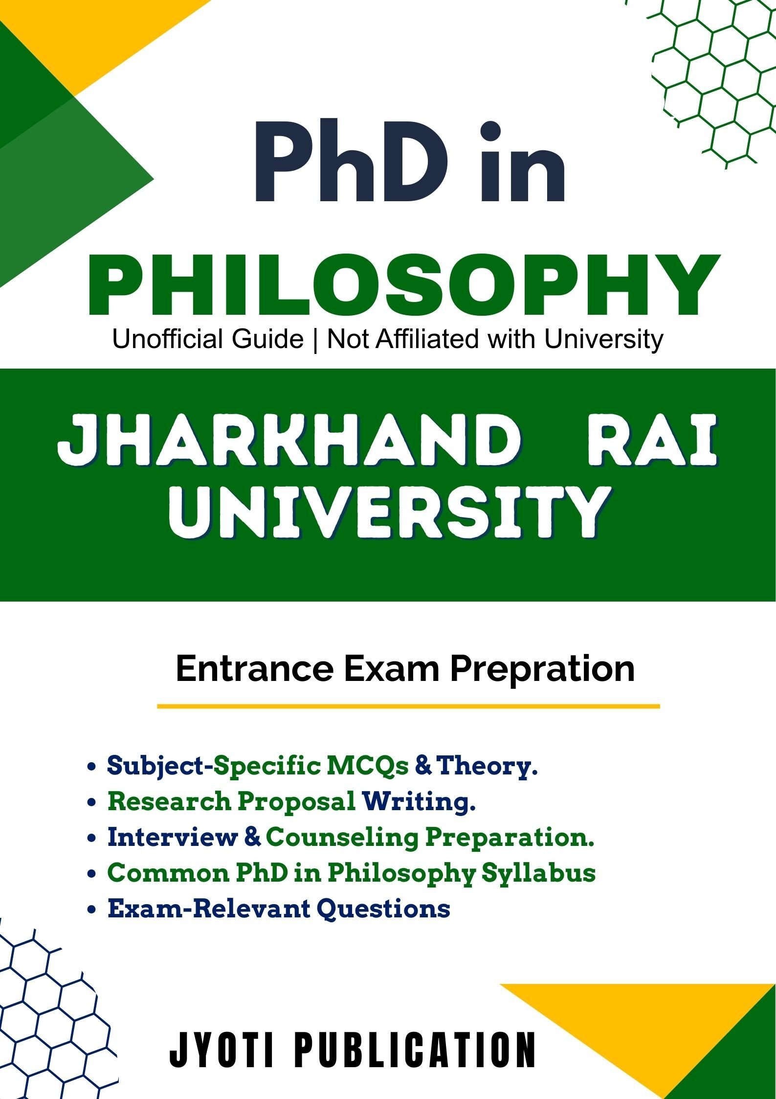Since many universities follow similar frameworks for entrance testing, this guide also includes overlapping concepts useful for candidates appearing in multiple PhD in Philosophy entrance examinations. This makes the book a practical preparation resource beyond a single exam context.