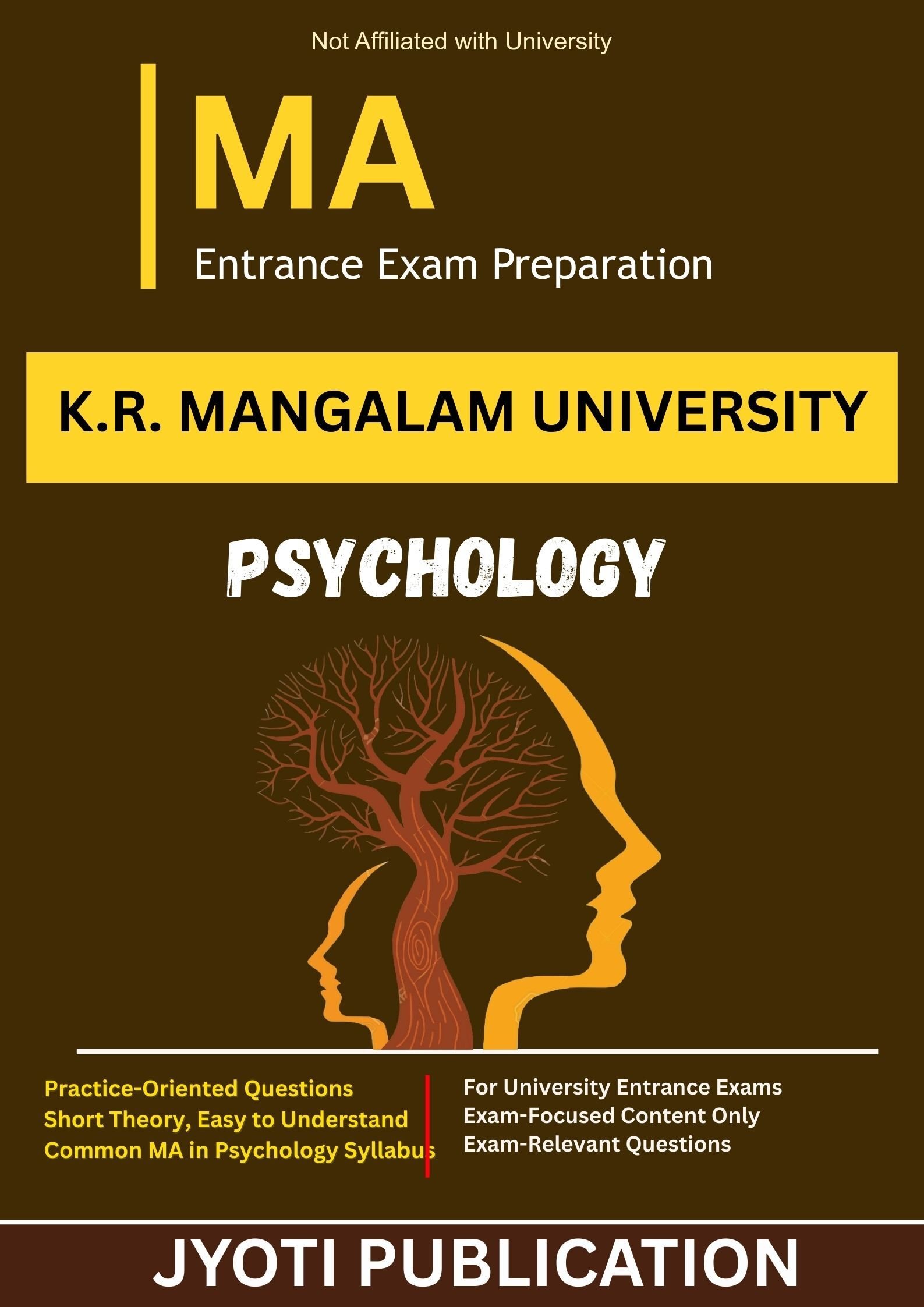 K.R. Mangalam University M.A. in Psychology Entrance Exam Preparation Guide is an independently developed study resource created to support aspirants preparing for the M.A. in Psychology entrance examination conducted by K.R. Mangalam University. The book is designed to help candidates understand concepts clearly, practise exam-oriented questions, and prepare in a structured and efficient manner.