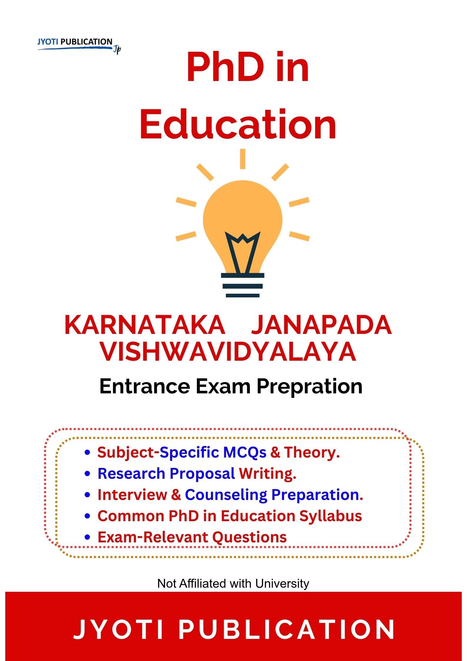 Karnataka Janapada Vishwavidyalaya PhD in Education Entrance Entrance Exam Preparation Guide is an independently developed study resource created to support aspirants preparing for the PhD in Education Entrance entrance examination conducted by Karnataka Janapada Vishwavidyalaya. The book is designed to help candidates understand concepts clearly, practise exam-oriented questions, and prepare in a structured and efficient manner.