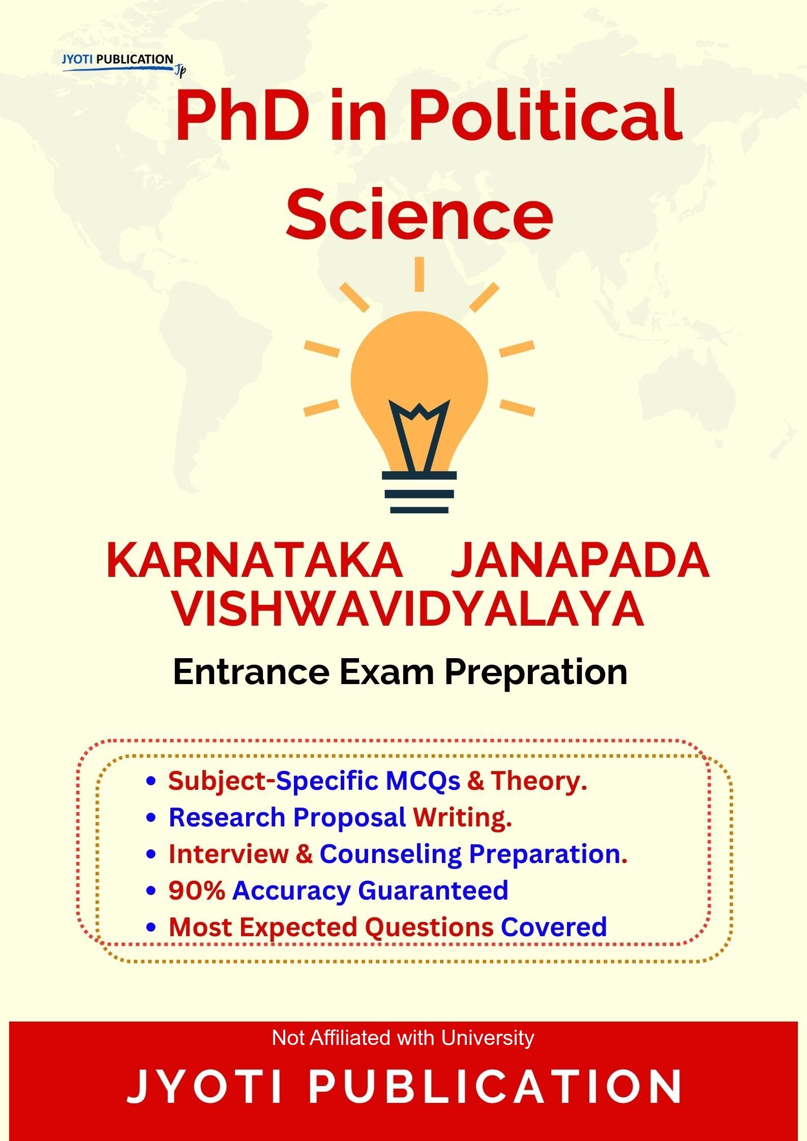Karnataka Janapada Vishwavidyalaya PhD in Political Science Entrance Exam Preparation Guide is an independently developed study resource created to support aspirants preparing for the PhD in Political Science entrance examination conducted by Karnataka Janapada Vishwavidyalaya. The book is designed to help candidates understand concepts clearly, practise exam-oriented questions, and prepare in a structured and efficient manner.