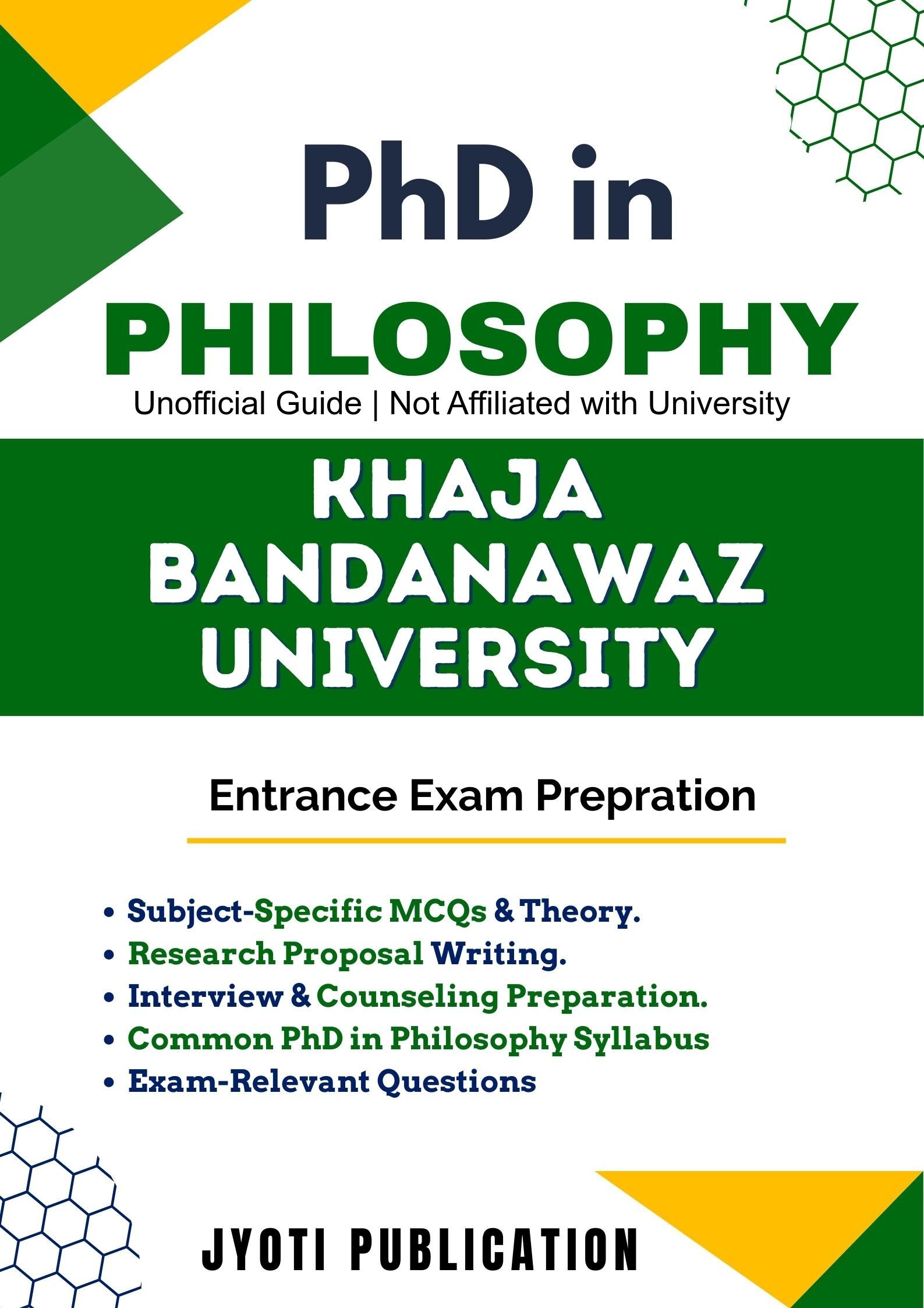 Khaja Bandanawaz University PhD in Philosophy Entrance Exam Preparation Guide is an independently developed study resource created to support aspirants preparing for the PhD in Philosophy entrance examination conducted by Khaja Bandanawaz University. The book is designed to help candidates understand concepts clearly, practise exam-oriented questions, and prepare in a structured and efficient manner.