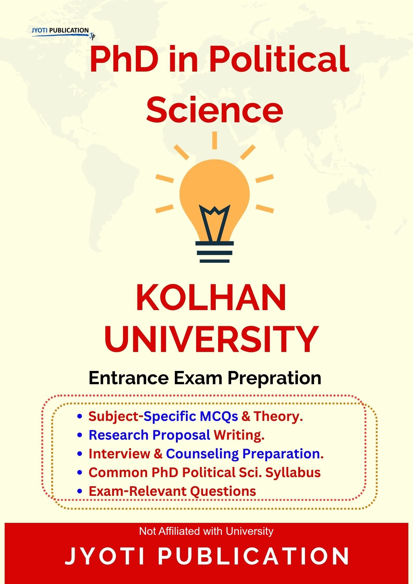 Kolhan University PhD in Political Science Entrance Exam Preparation Guide is an independently developed study resource created to support aspirants preparing for the PhD in Political Science entrance examination conducted by Kolhan University. The book is designed to help candidates understand concepts clearly, practise exam-oriented questions, and prepare in a structured and efficient manner.