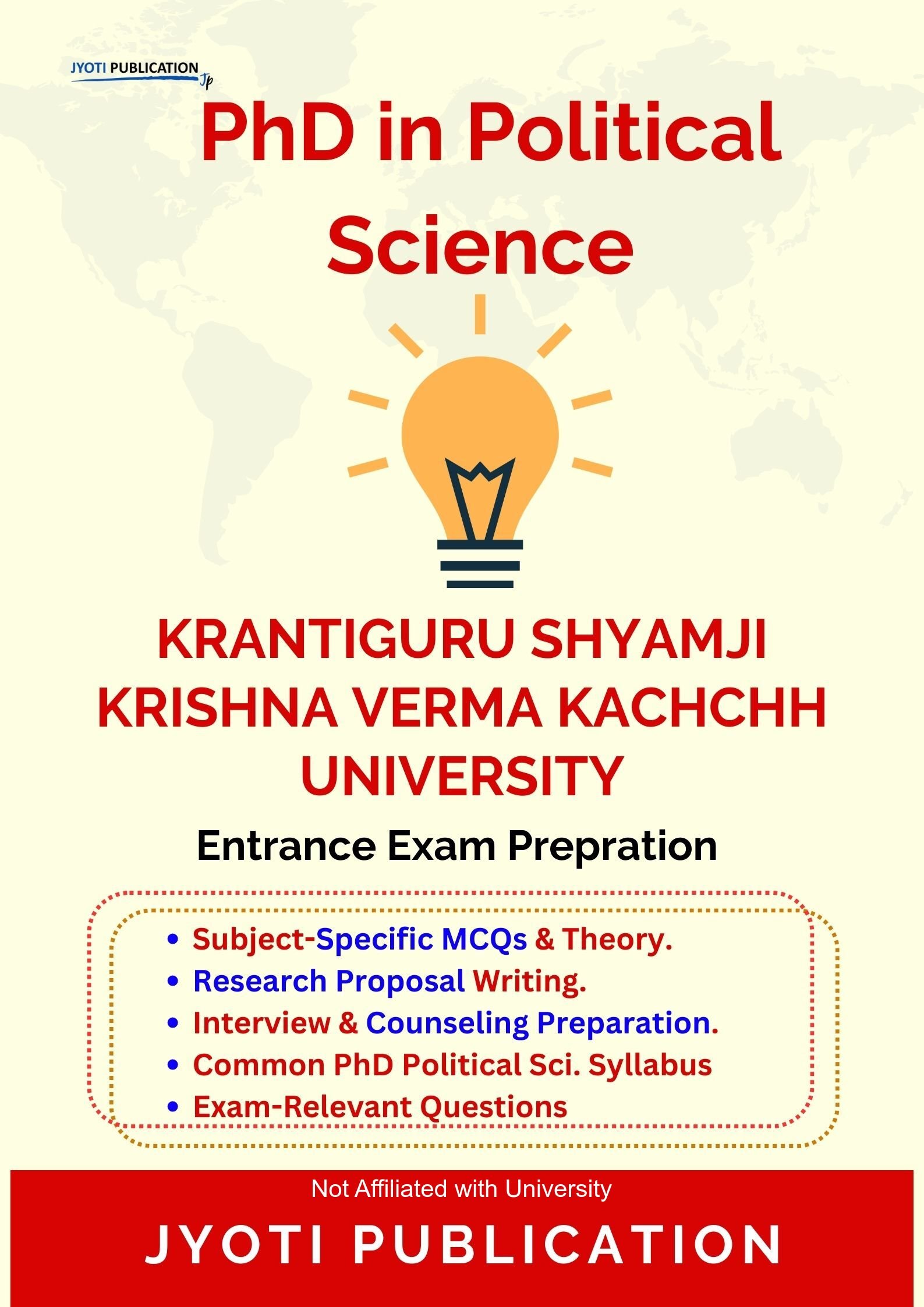Krantiguru Shyamji Krishna Verma Kachchh University PhD in Political Science Entrance Exam Preparation Guide is an independently developed study resource created to support aspirants preparing for the PhD in Political Science entrance examination conducted by Krantiguru Shyamji Krishna Verma Kachchh University. The book is designed to help candidates understand concepts clearly, practise exam-oriented questions, and prepare in a structured and efficient manner.