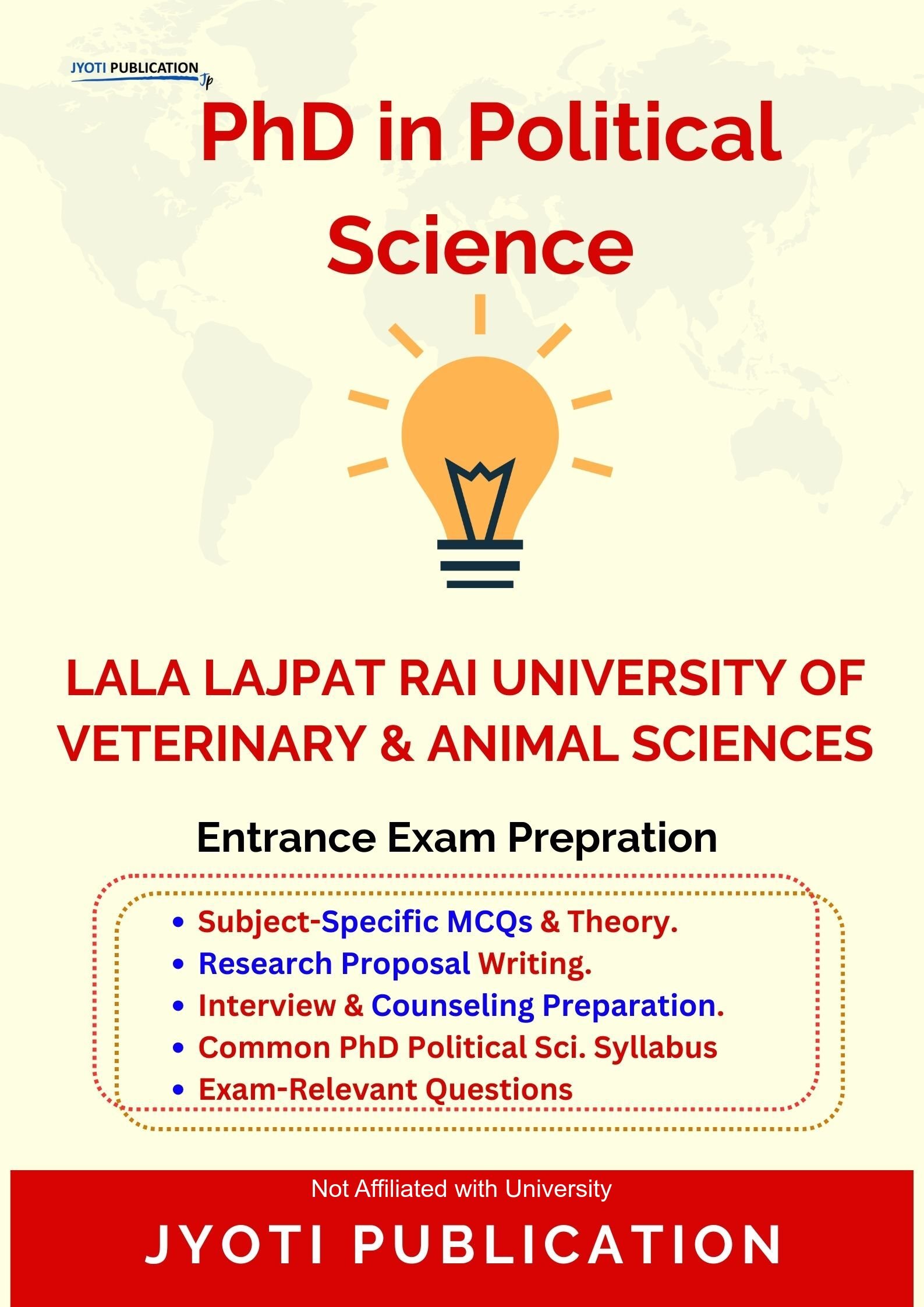 Lala Lajpat Rai University of Veterinary Animal Sciences PhD in Political Science Entrance Exam Preparation Guide is an independently developed study resource created to support aspirants preparing for the PhD in Political Science entrance examination conducted by Lala Lajpat Rai University of Veterinary Animal Sciences. The book is designed to help candidates understand concepts clearly, practise exam-oriented questions, and prepare in a structured and efficient manner.