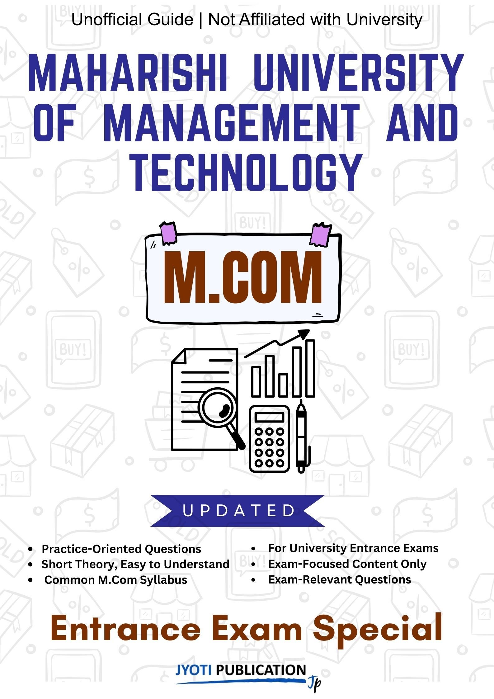 Maharishi University of Management and Technology M.Com Entrance Exam Preparation Guide is an independently developed study resource created to support aspirants preparing for the M.Com entrance examination conducted by Maharishi University of Management and Technology. The book is designed to help candidates understand concepts clearly, practise exam-oriented questions, and prepare in a structured and efficient manner.