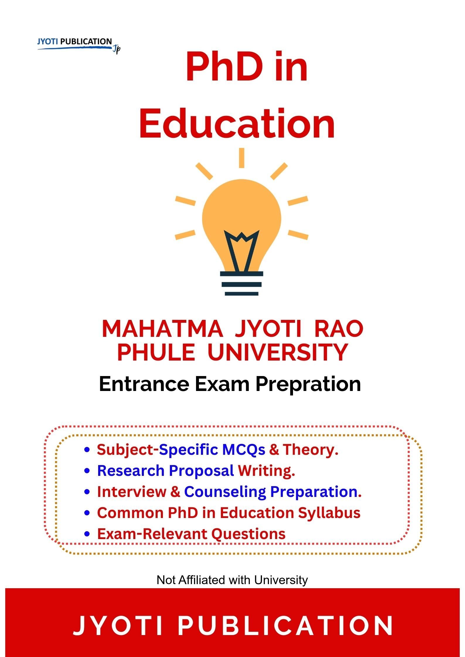 Mahatma Jyoti Rao Phule University PhD in Education Entrance Entrance Exam Preparation Guide is an independently developed study resource created to support aspirants preparing for the PhD in Education Entrance entrance examination conducted by Mahatma Jyoti Rao Phule University. The book is designed to help candidates understand concepts clearly, practise exam-oriented questions, and prepare in a structured and efficient manner.