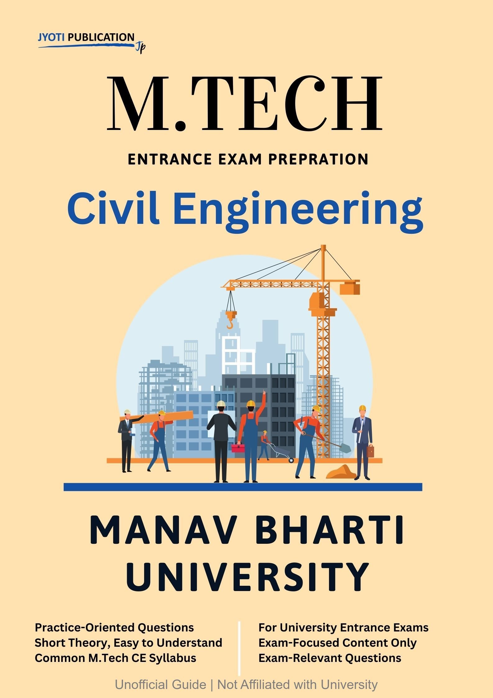 Manav Bharti University M.Tech in Civil Engineering Entrance Exam Preparation Guide is an independently developed study resource created to support aspirants preparing for the M.Tech in Civil Engineering entrance examination conducted by Manav Bharti University. The book is designed to help candidates understand concepts clearly, practise exam-oriented questions, and prepare in a structured and efficient manner.