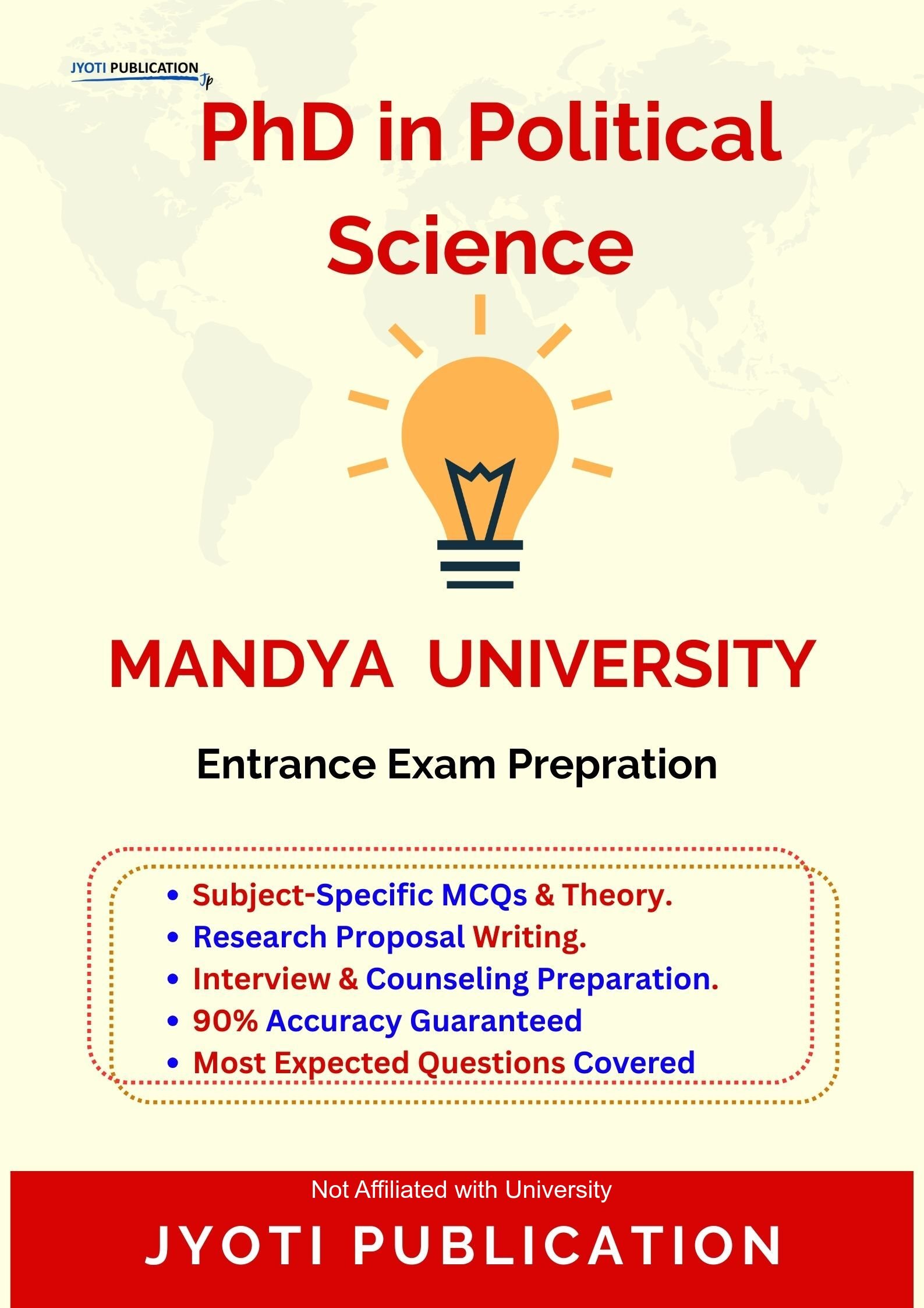 Mandya University PhD in Political Science Entrance Exam Preparation Guide is an independently developed study resource created to support aspirants preparing for the PhD in Political Science entrance examination conducted by Mandya University. The book is designed to help candidates understand concepts clearly, practise exam-oriented questions, and prepare in a structured and efficient manner.