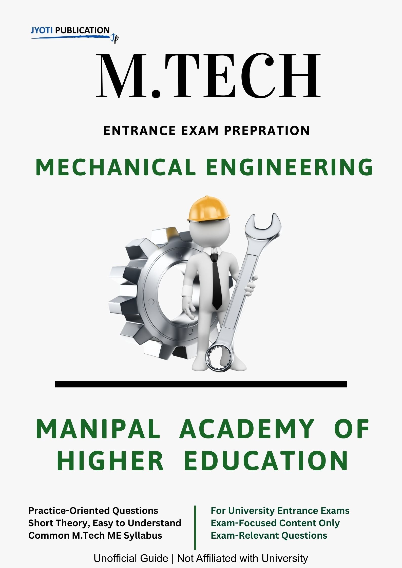 Manipal Academy of Higher Education M.Tech in Mechanical Engineering Entrance Exam Preparation Guide is an independently developed study resource created to support aspirants preparing for the M.Tech in Mechanical Engineering entrance examination conducted by Manipal Academy of Higher Education. The book is designed to help candidates understand concepts clearly, practise exam-oriented questions, and prepare in a structured and efficient manner.