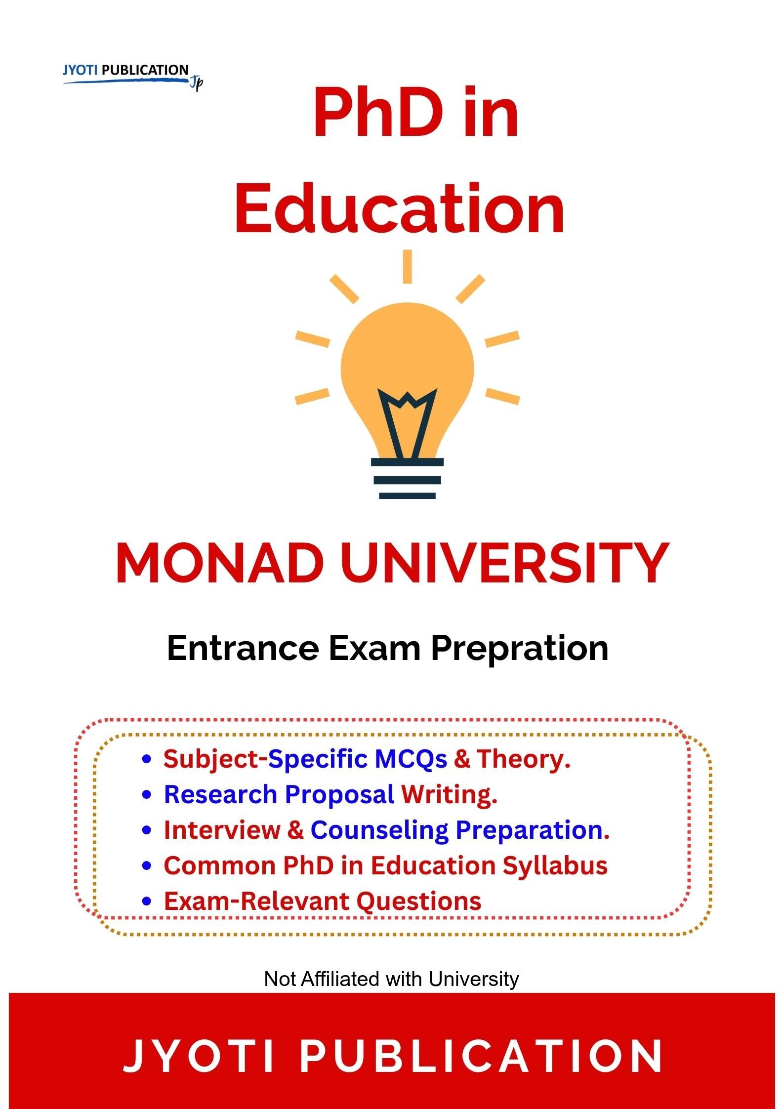 Monad University PhD in Education Entrance Entrance Exam Preparation Guide is an independently developed study resource created to support aspirants preparing for the PhD in Education Entrance entrance examination conducted by Monad University. The book is designed to help candidates understand concepts clearly, practise exam-oriented questions, and prepare in a structured and efficient manner.