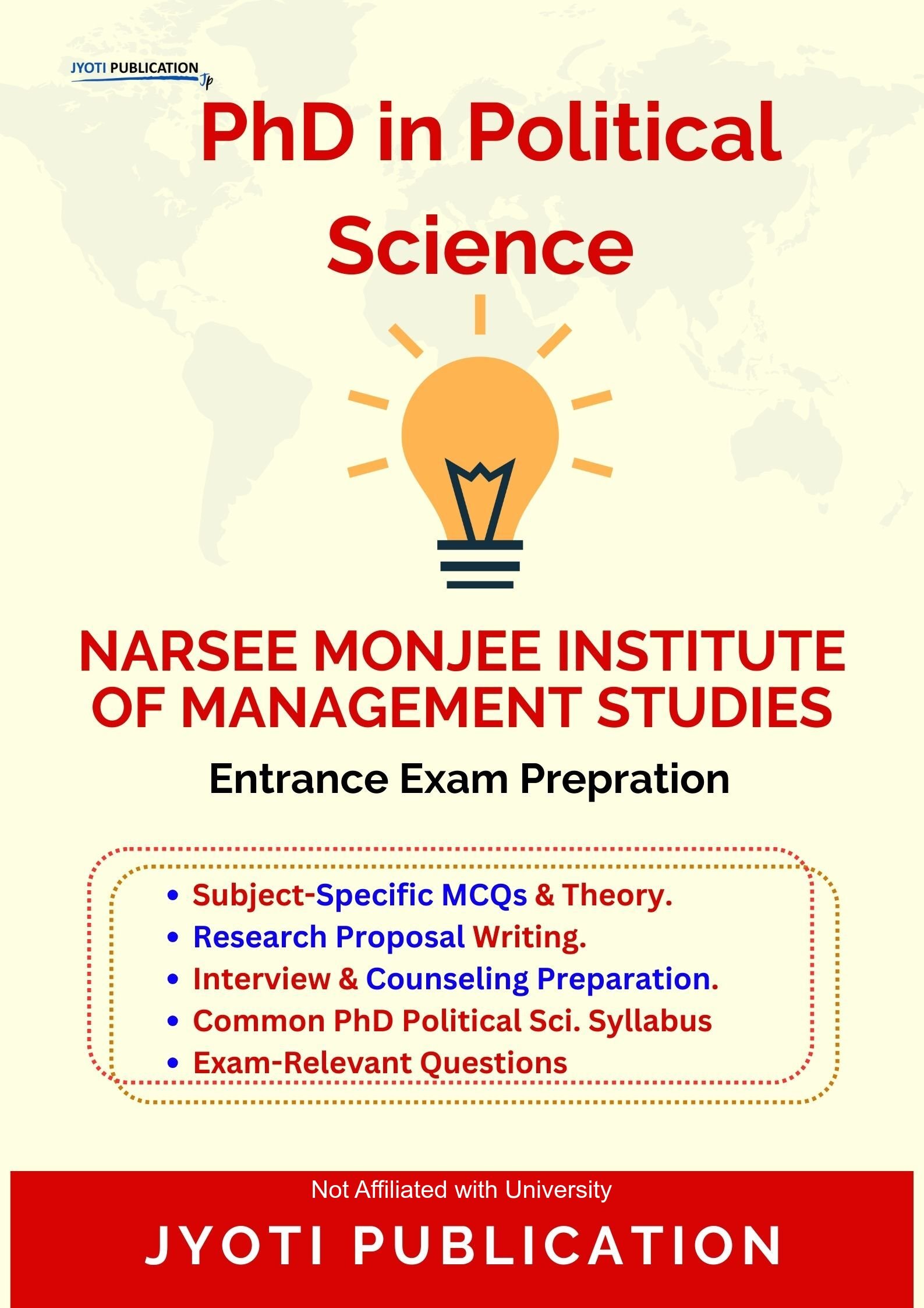 Narsee Monjee Institute of Management Studies PhD in Political Science Entrance Exam Preparation Guide is an independently developed study resource created to support aspirants preparing for the PhD in Political Science entrance examination conducted by Narsee Monjee Institute of Management Studies. The book is designed to help candidates understand concepts clearly, practise exam-oriented questions, and prepare in a structured and efficient manner.