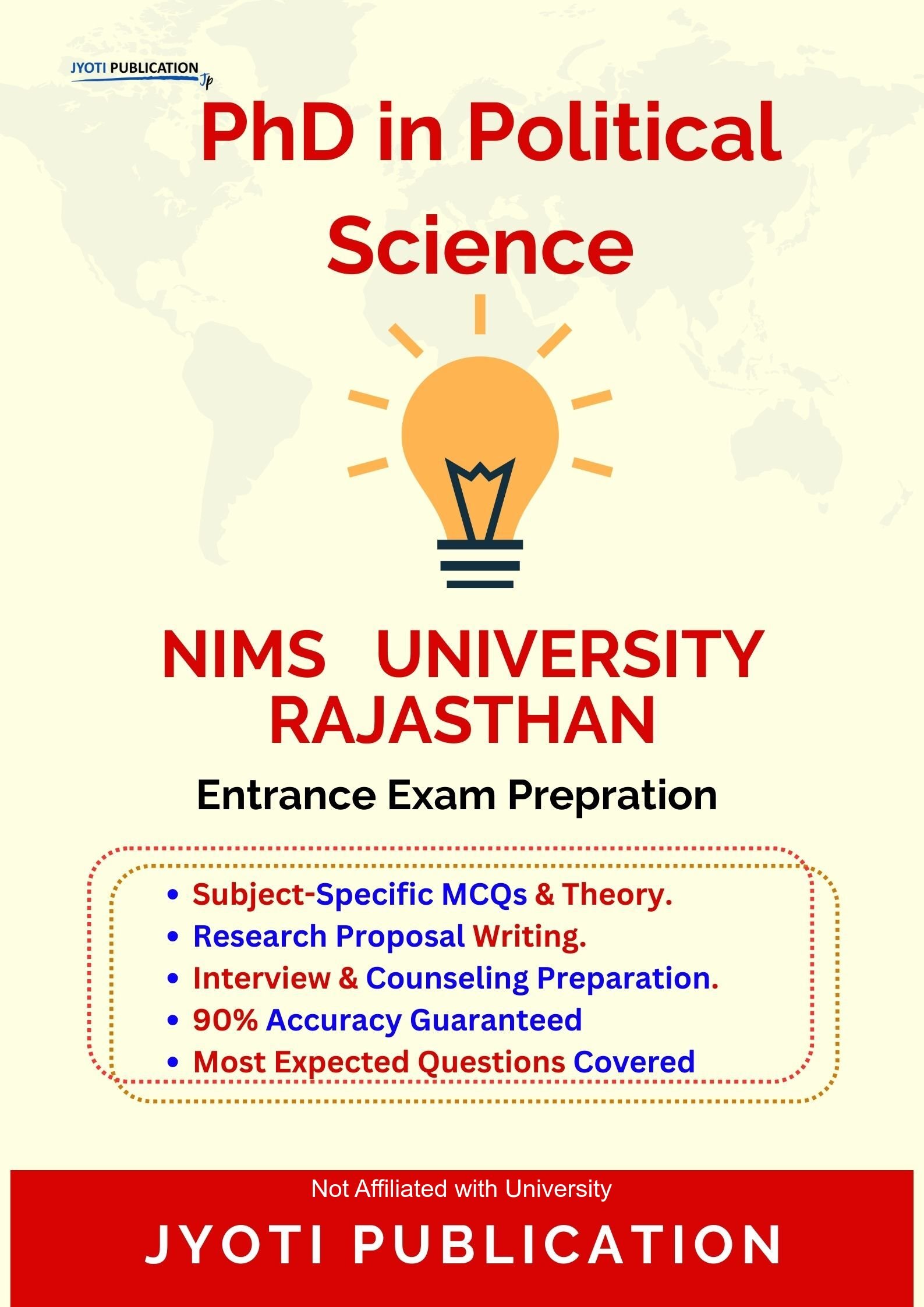 Nims University Rajasthan PhD in Political Science Entrance Exam Preparation Guide is an independently developed study resource created to support aspirants preparing for the PhD in Political Science entrance examination conducted by Nims University Rajasthan. The book is designed to help candidates understand concepts clearly, practise exam-oriented questions, and prepare in a structured and efficient manner.