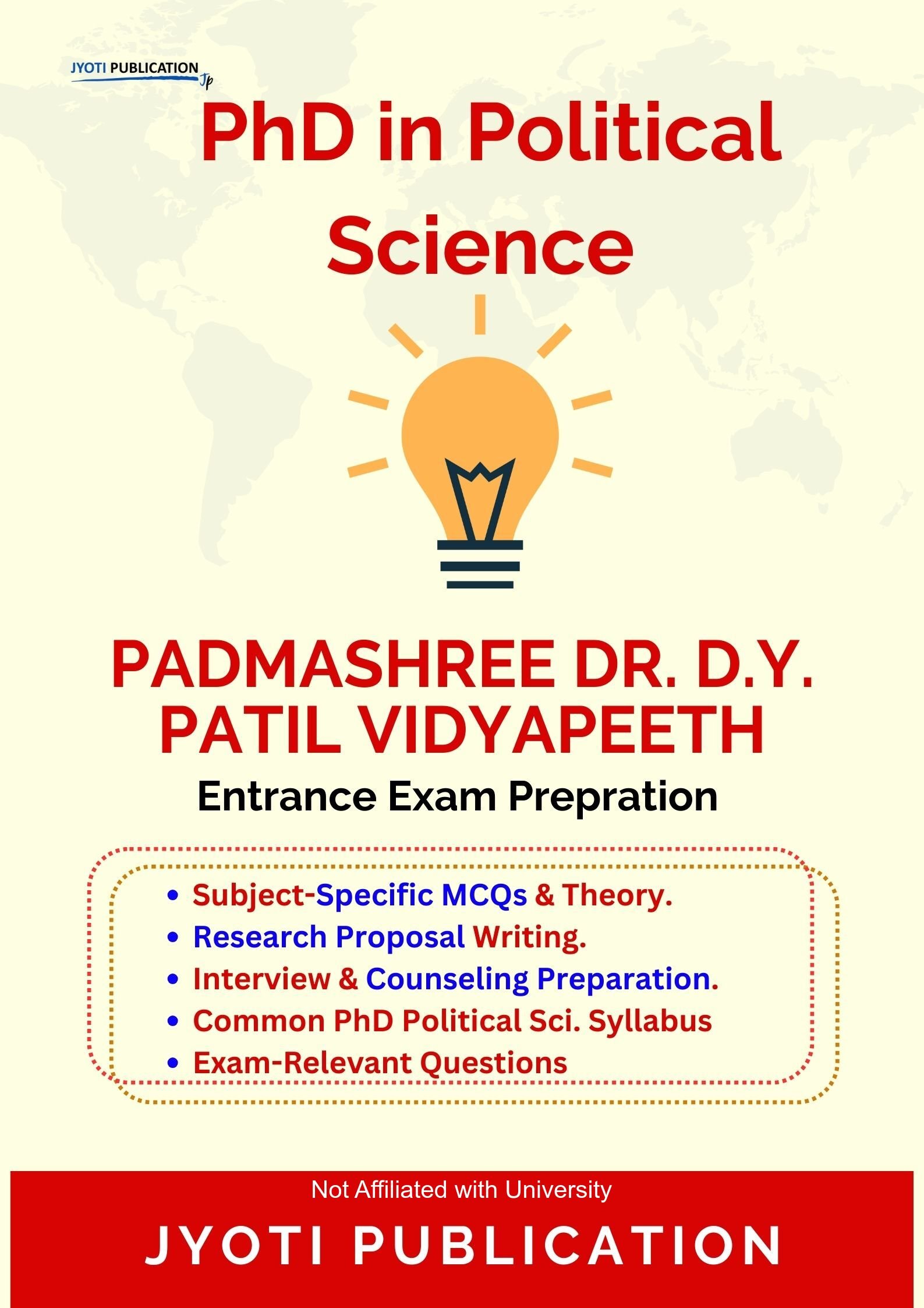 Padmashree Dr. D.Y. Patil Vidyapeeth PhD in Political Science Entrance Exam Preparation Guide is an independently developed study resource created to support aspirants preparing for the PhD in Political Science entrance examination conducted by Padmashree Dr. D.Y. Patil Vidyapeeth. The book is designed to help candidates understand concepts clearly, practise exam-oriented questions, and prepare in a structured and efficient manner.