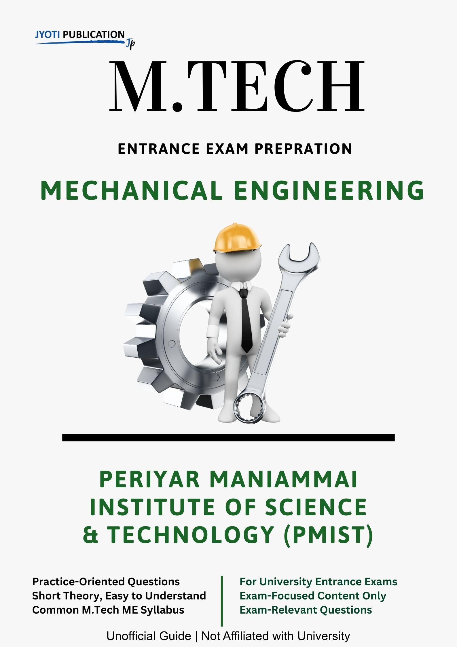 Periyar Maniammai Institute of Science Technology PMIST M.Tech in Mechanical Engineering Entrance Exam Preparation Guide is an independently developed study resource created to support aspirants preparing for the M.Tech in Mechanical Engineering entrance examination conducted by Periyar Maniammai Institute of Science Technology PMIST. The book is designed to help candidates understand concepts clearly, practise exam-oriented questions, and prepare in a structured and efficient manner.