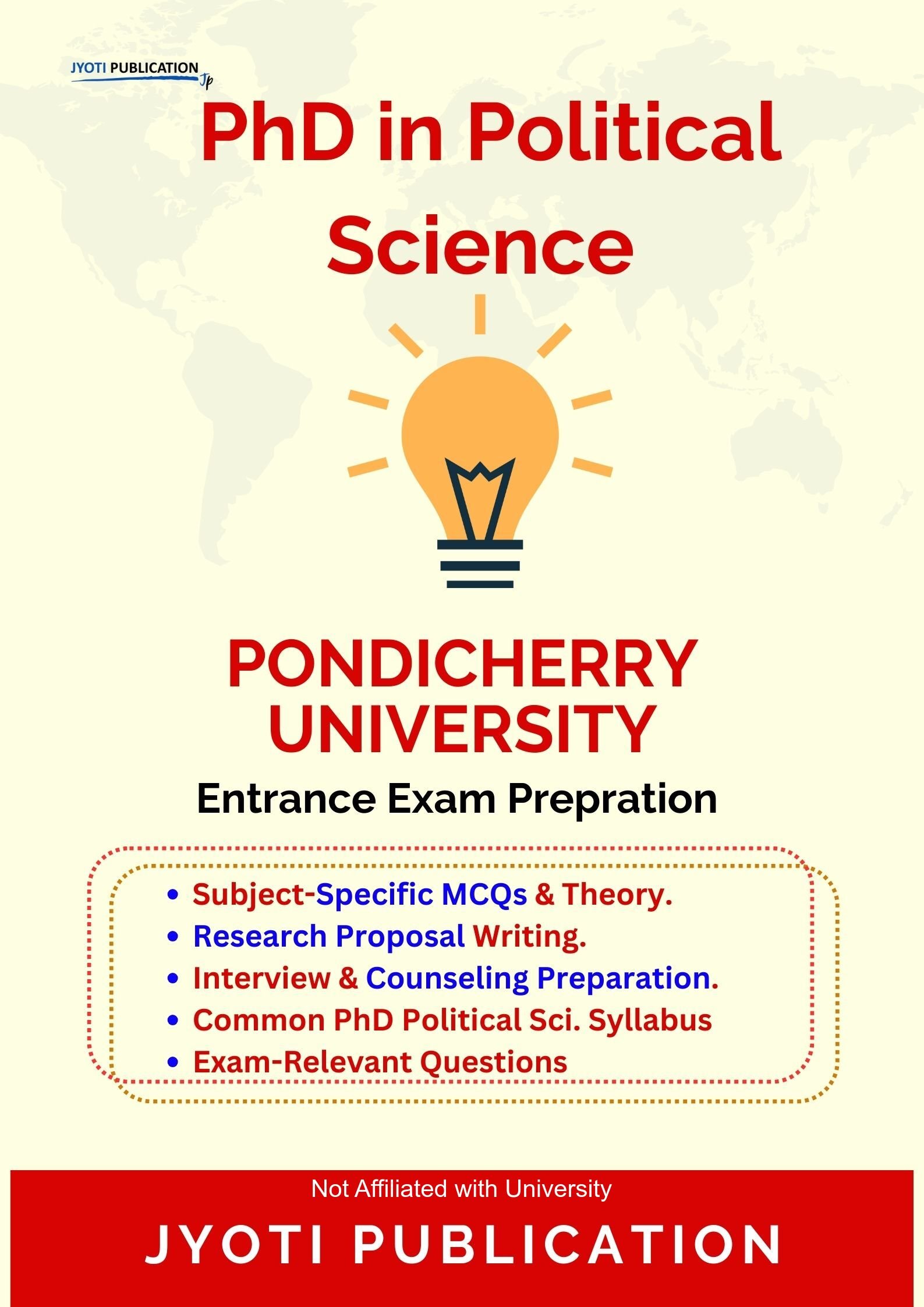 Pondicherry University PhD in Political Science Entrance Exam Preparation Guide is an independently developed study resource created to support aspirants preparing for the PhD in Political Science entrance examination conducted by Pondicherry University. The book is designed to help candidates understand concepts clearly, practise exam-oriented questions, and prepare in a structured and efficient manner.