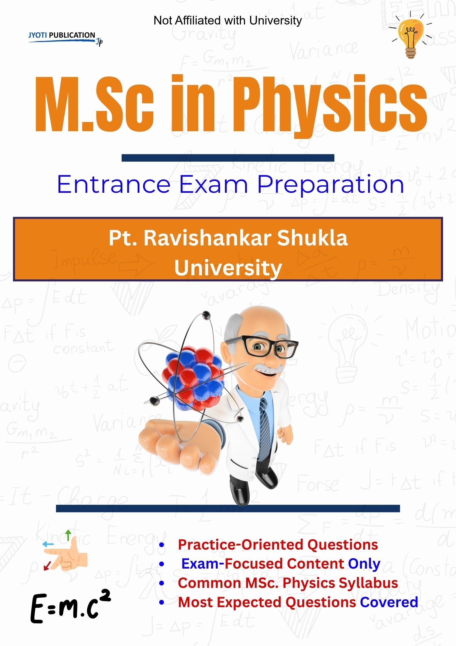 Pt. Ravishankar Shukla University M.Sc in Physics Entrance Exam Preparation Guide is an independently developed study resource created to support aspirants preparing for the M.Sc in Physics entrance examination conducted by Pt. Ravishankar Shukla University. The book is designed to help candidates understand concepts clearly, practise exam-oriented questions, and prepare in a structured and efficient manner.