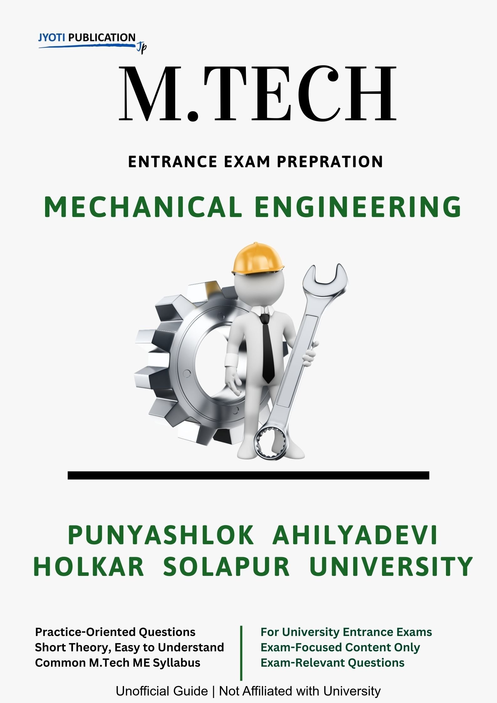 Punyashlok Ahilyadevi Holkar Solapur University formerly Solapur University M.Tech in Mechanical Engineering Entrance Exam Preparation Guide is an independently developed study resource created to support aspirants preparing for the M.Tech in Mechanical Engineering entrance examination conducted by Punyashlok Ahilyadevi Holkar Solapur University formerly Solapur University. The book is designed to help candidates understand concepts clearly, practise exam-oriented questions, and prepare in a structured and efficient manner.