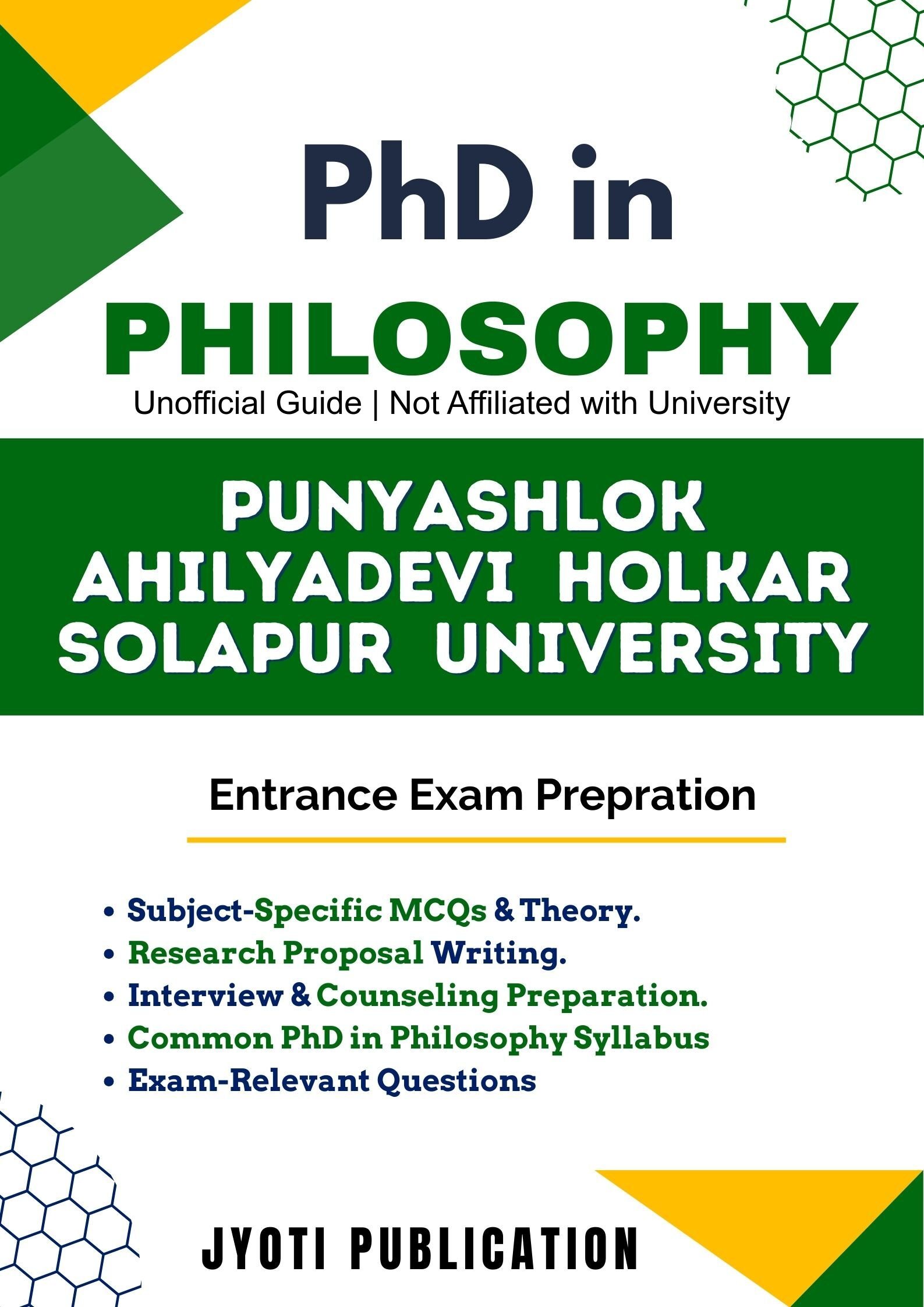 Punyashlok Ahilyadevi Holkar Solapur University formerly Solapur University PhD in Philosophy Entrance Exam Preparation Guide is an independently developed study resource created to support aspirants preparing for the PhD in Philosophy entrance examination conducted by Punyashlok Ahilyadevi Holkar Solapur University formerly Solapur University. The book is designed to help candidates understand concepts clearly, practise exam-oriented questions, and prepare in a structured and efficient manner.