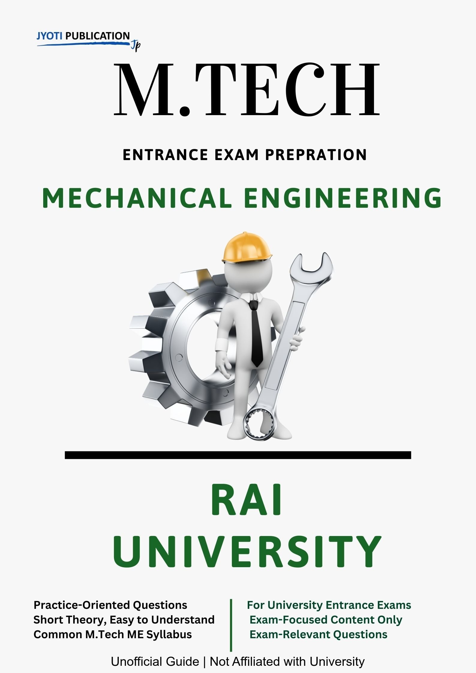 Rai University M.Tech in Mechanical Engineering Entrance Exam Preparation Guide is an independently developed study resource created to support aspirants preparing for the M.Tech in Mechanical Engineering entrance examination conducted by Rai University. The book is designed to help candidates understand concepts clearly, practise exam-oriented questions, and prepare in a structured and efficient manner.