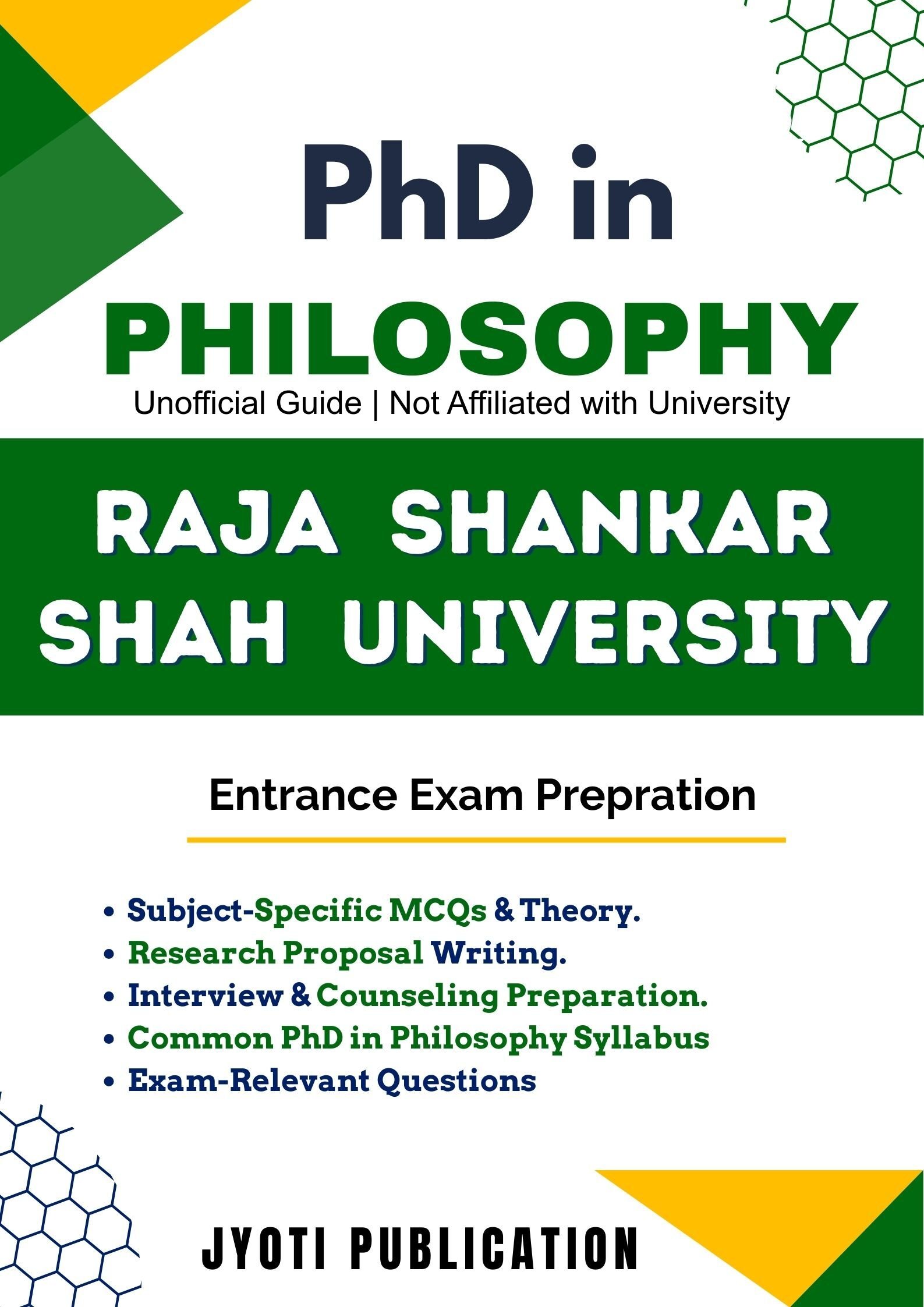 Since many universities follow similar frameworks for entrance testing, this guide also includes overlapping concepts useful for candidates appearing in multiple PhD in Philosophy entrance examinations. This makes the book a practical preparation resource beyond a single exam context.